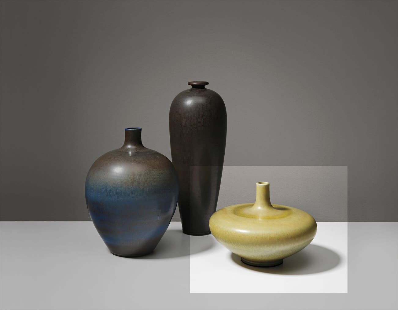 Produced at Gustavsberg, Sweden. Incised with Friberg E, Gustavsberg Studio mark and manufacturer's paper label GUSTAVSBERG SWEDEN.