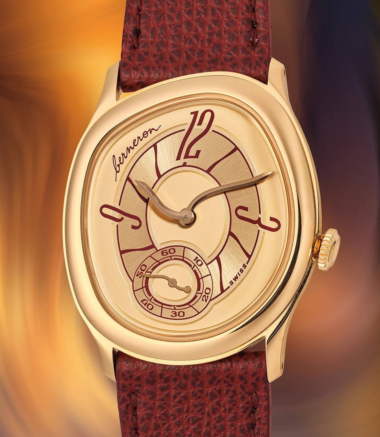 A limited production and avant-garde yellow gold asymmetrical wristwatch with subsidiary seconds, asymmetrical movement, warranty, and presentation box