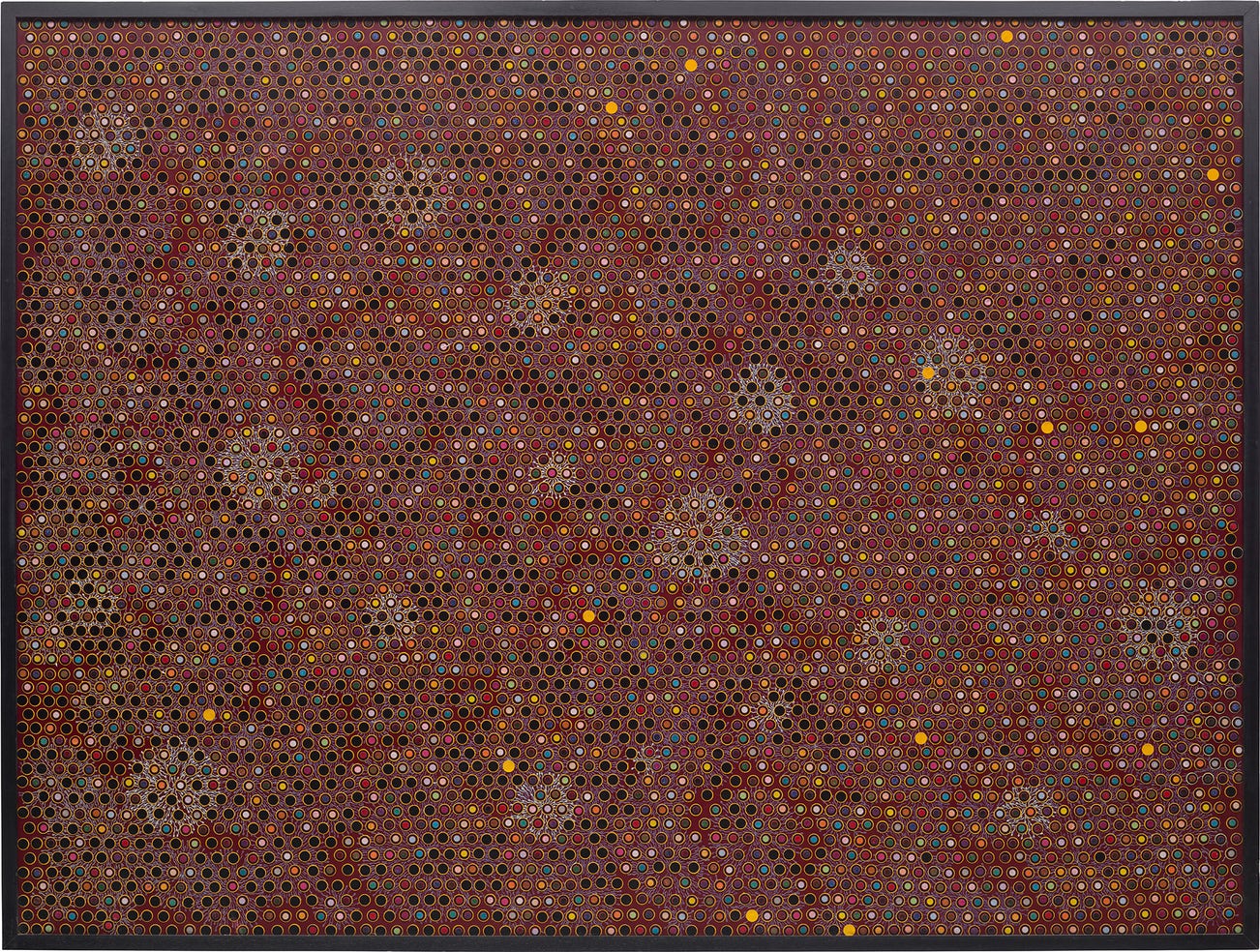 bindis on painted board, in artist's frame