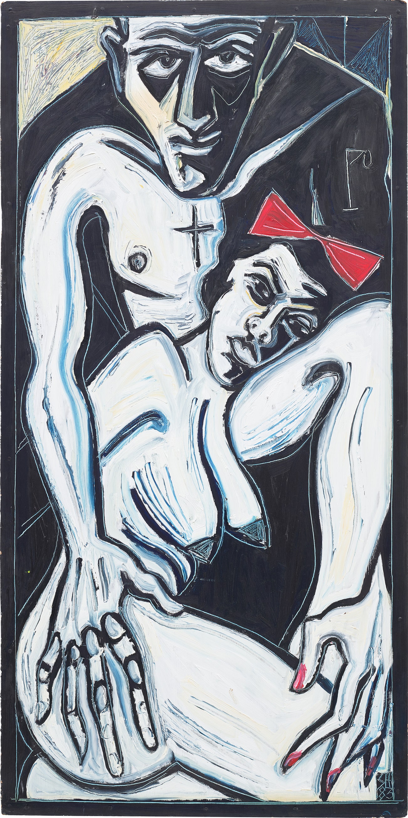 signed with the artist's initials, titled and dated 'S.H. 83 BILLY + TRACI' on the reverse