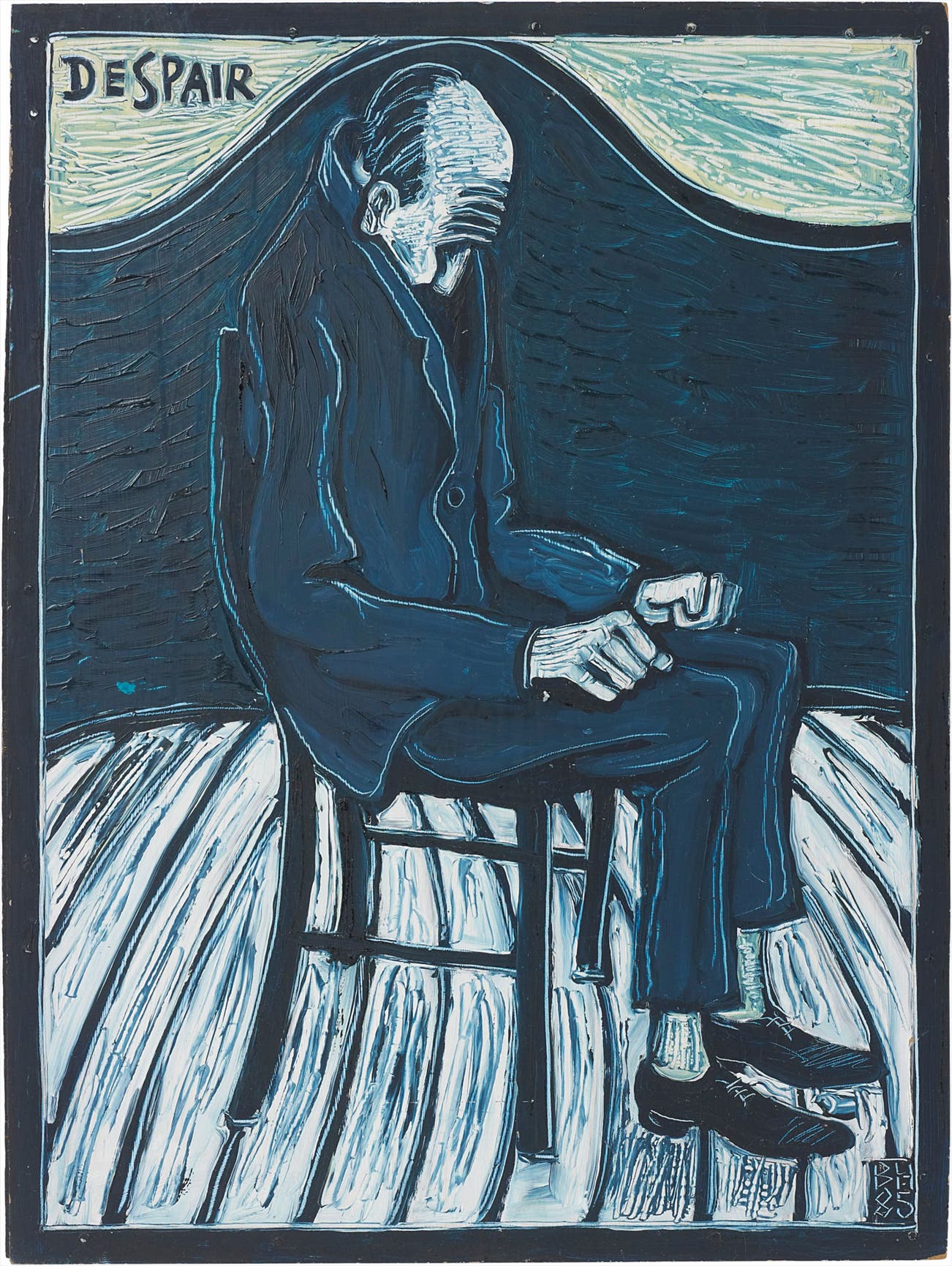 Signed and dated 'BH 85' lower right and titled 'Despair' upper left.