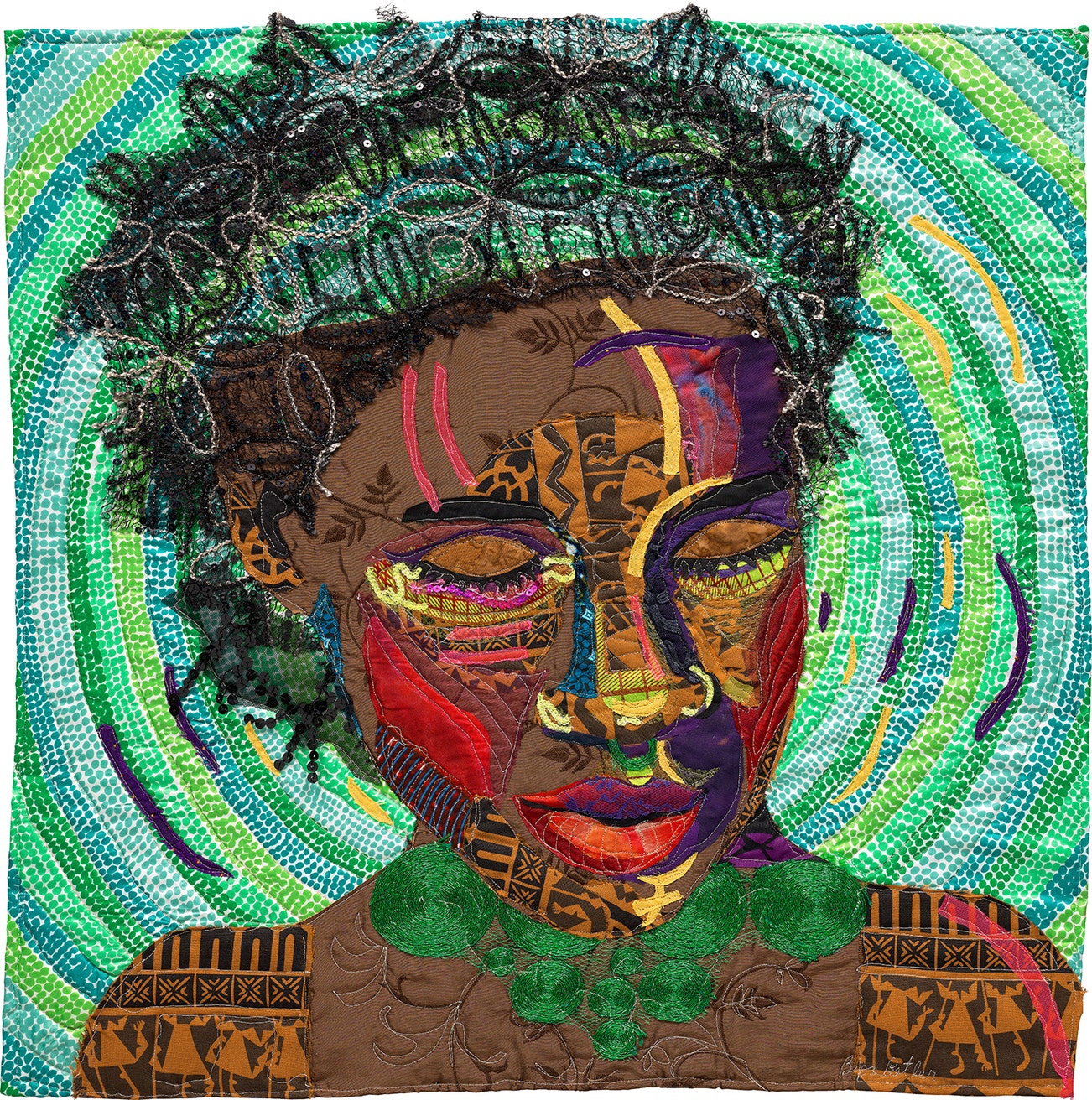 stitched with the artist's name "Bisa Butler" lower right