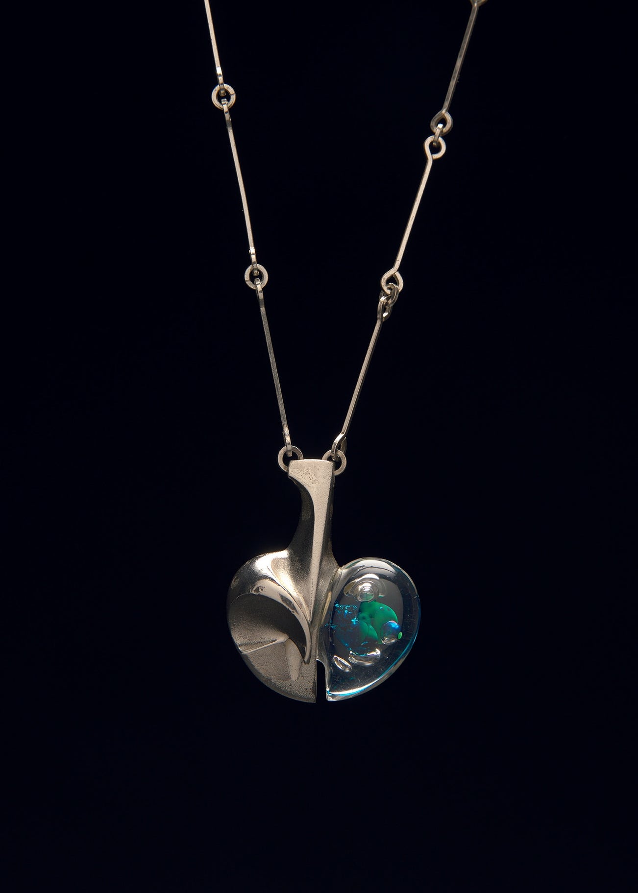Produced by Lapponia, Finland. Reverse of pendant marked with maker's mark, 926H, Finnish assay mark, date mark E8, LAPPONIA and chain marked STERLING.