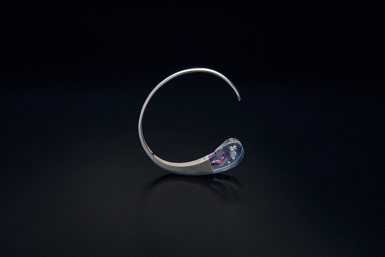 Mould-cast silver and acrylic.