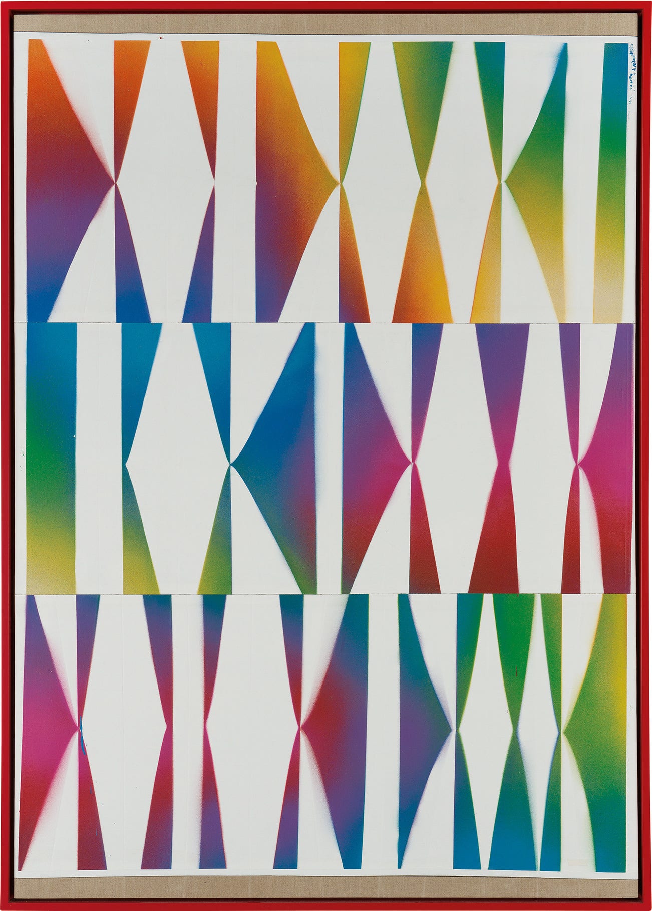 acrylic, gesso and spray paint on linen, in artist's lacquered wood frame