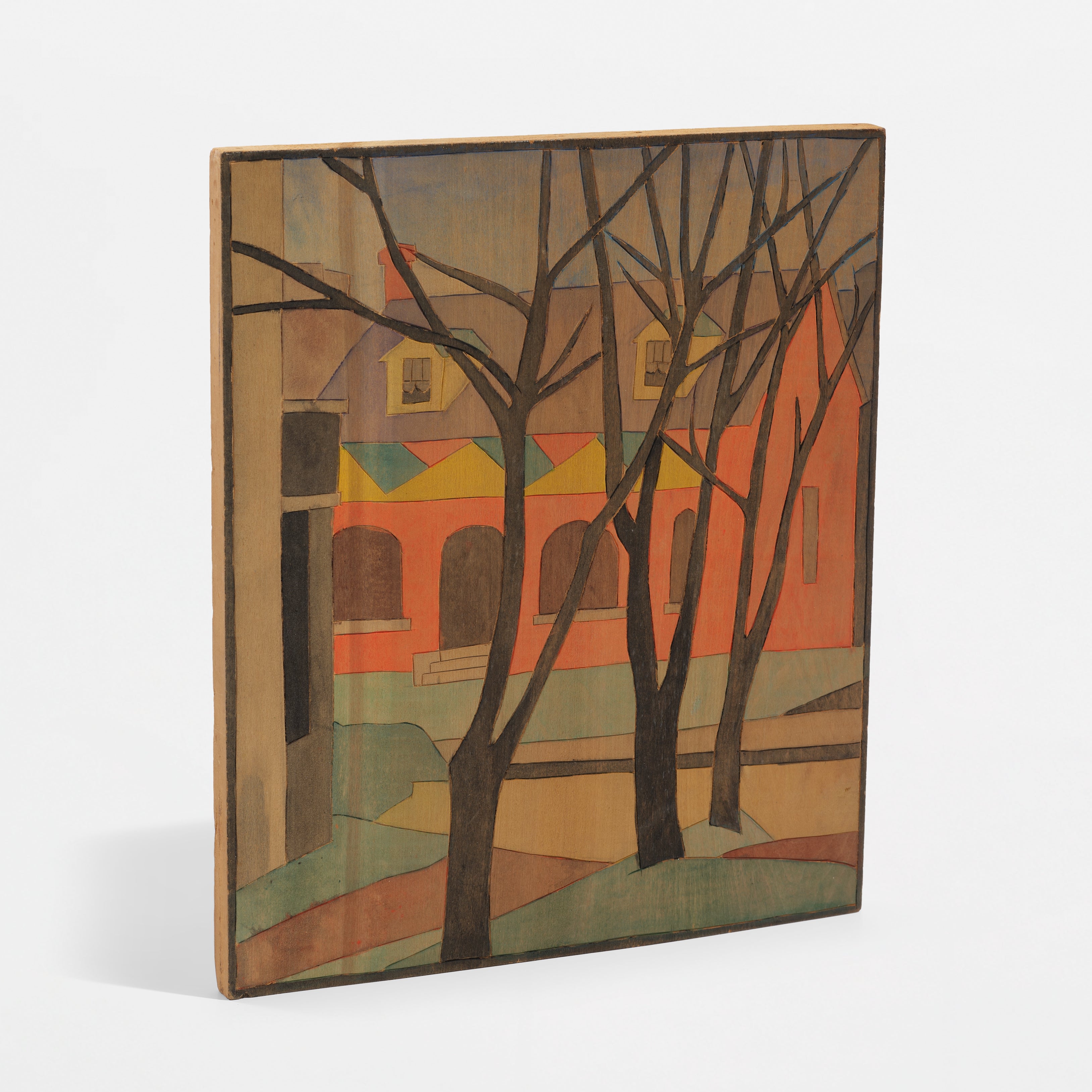 Inscribed 'No 130. Three Tree. 1950. Blanche Lazzell' on the right side of the block, framed.