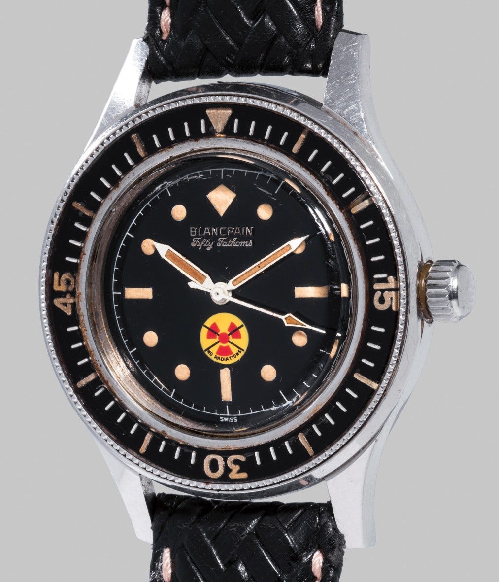 A very attractive and large stainless steel diver's wristwatch with "No Radiations" black glossy dial