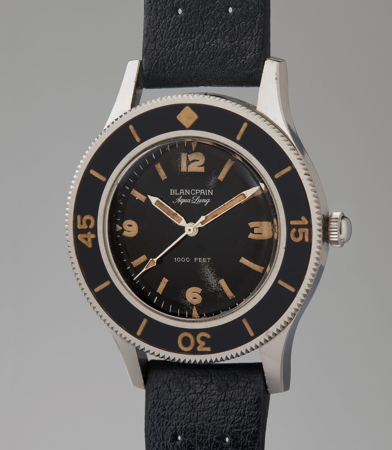 The name “Aqua-Lung” found on the dial derives from the first open-circuit self-contained underwater breathing apparatus invented in the winter of 1942 by Jacques Cousteau and Émile Gagnan, who later founded the company La Spirotechnique to manufacture and distribute their SCUBA equipment. The name AquaLung was chosen as it would be more appealing for American audiences, rather than the original French name of “scaphandre autonome”. To complicate these issues of nomenclature, the American sister company of La Spirotechnique was called U.S. Divers, which later changed their name to Aqua Lung and then to Aqua Lung America. As the Fifty Fathoms was a tool watch for those customers of Aqua Lung, Blancpain partnered with the SCUBA equipment company, and the first known cosigned wristwatch appeared on the cover of a US Divers catalogue in 1958.