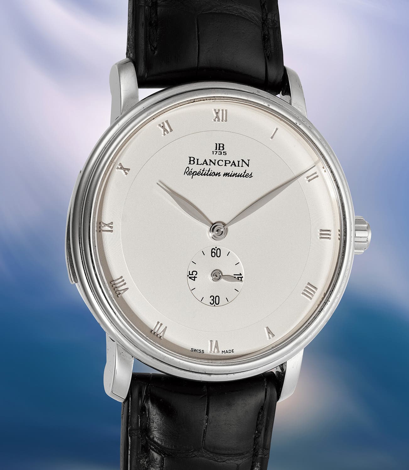 Preserved in excellent condition, the present minute-repeating Blancpain bears the prestigious movement number 01 and is being offered directly from the collection of Francis Ford Coppola. Coppola purchased the present watch due to Blancpain’s reputation for innovation of chimes in wrist watches.
