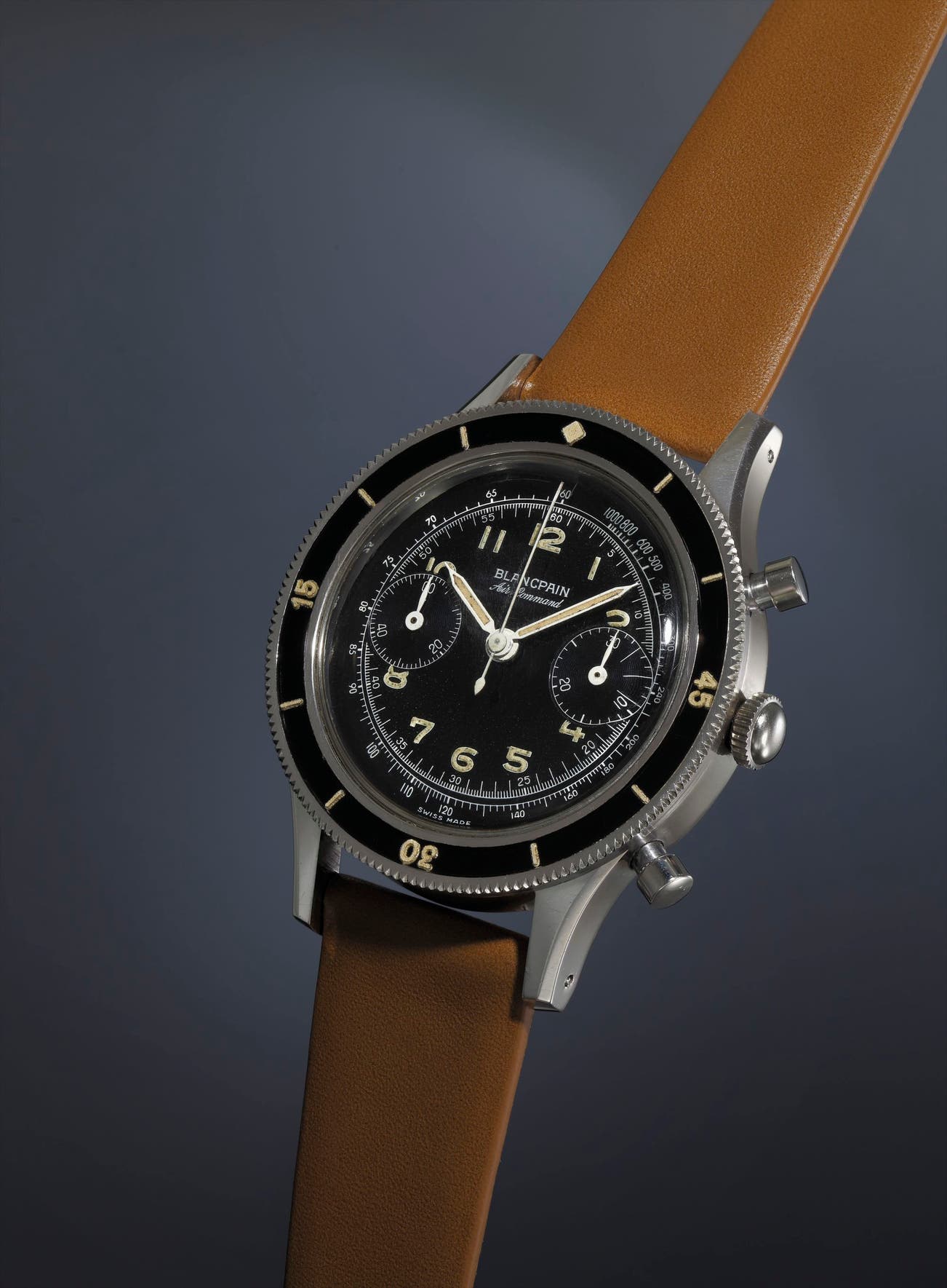 Air Commands have Blancpain-signed movements, it is possible that examples like the one presented here have only been assembled and fitted with a Valjoux 222 after the sell-off of the cases, dials, bezels and pushers and hands.
