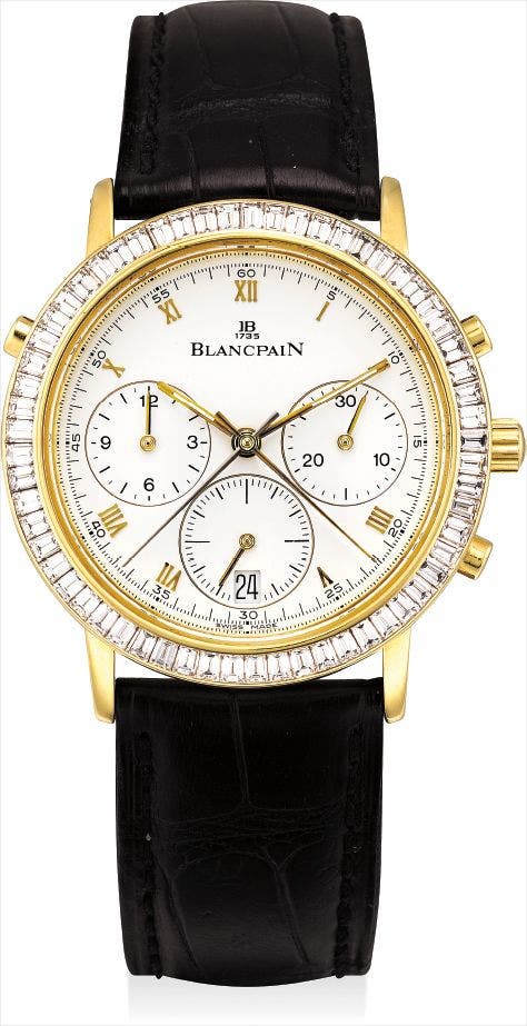 A fine yellow gold and diamond-set limited edition split seconds chronograph wristwatch with date