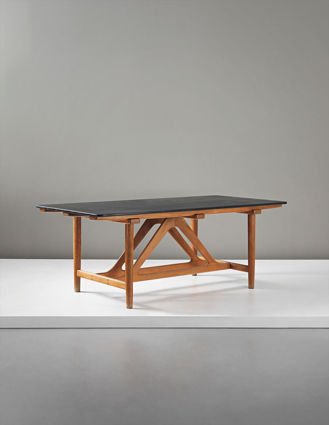 Børge Mogensen, born in 1914, apprenticed as a cabinetmaker and continued his studies at the Copenhagen School of Arts and Crafts and the Academy of Arts in Copenhagen, founded by architect and Professor Kaare Klint, where he graduated in 1941. After his studies at the Royal Academy and several collaborations with Kaare Klint, Mogensen became one of the best known contributors to modern Danish design. Driven by his mentor Klint's philosophy, his work was characterised by a simplicity of the line, truth to materials and functionalism.