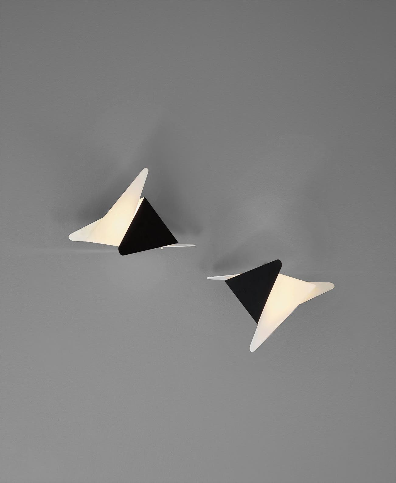 Painted steel, acrylic, nickel-plated brass, painted brass.