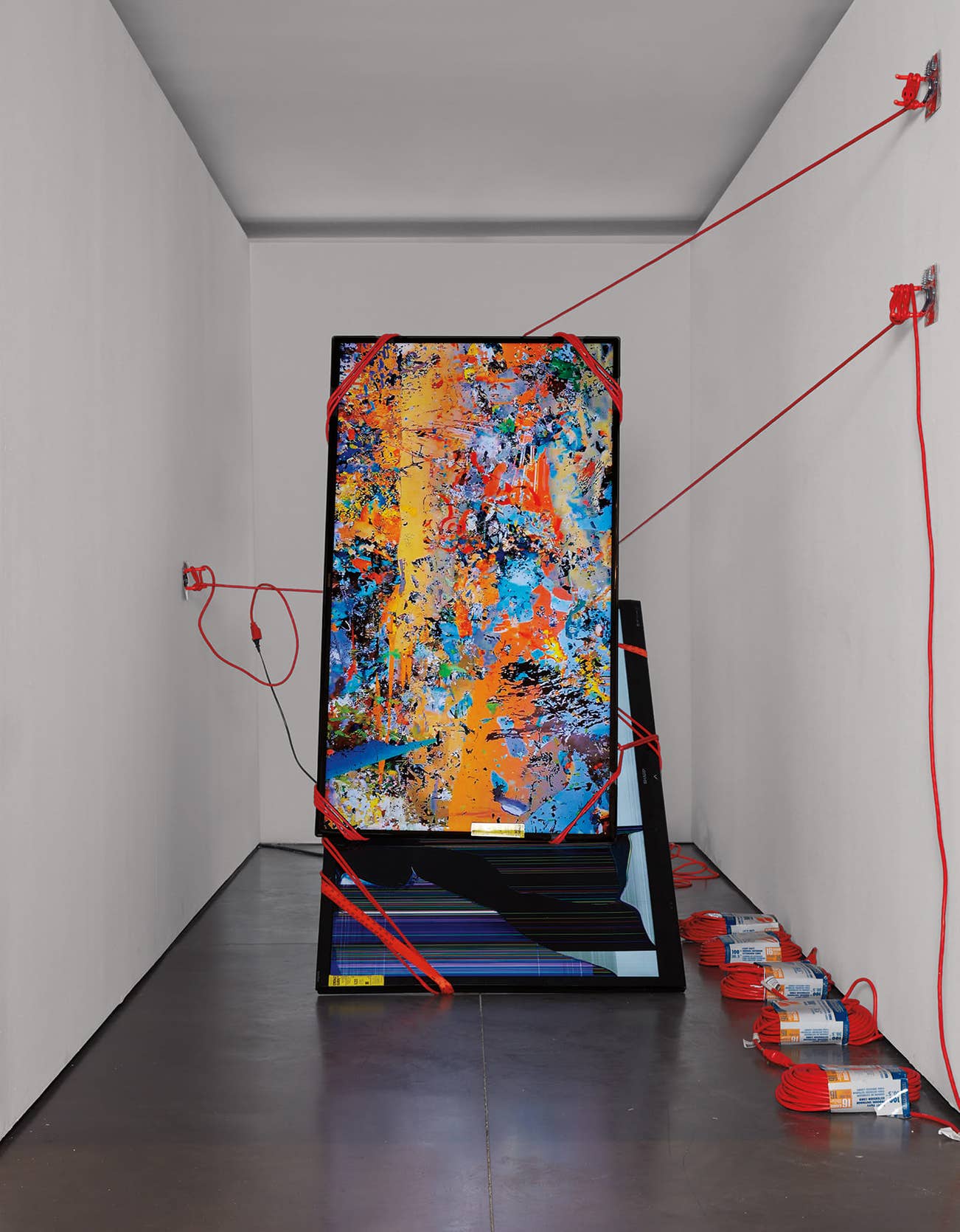 looping video, two televisions and extension cords