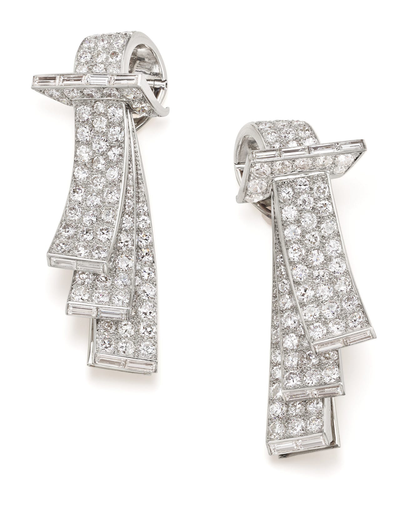 A Pair of Art Deco Diamond, Platinum and Gold Clips