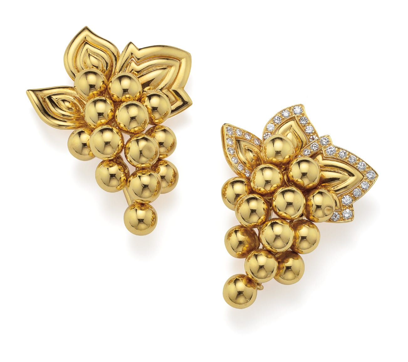 A Companion Pair of Diamond and Gold ‘Grape’ Brooches