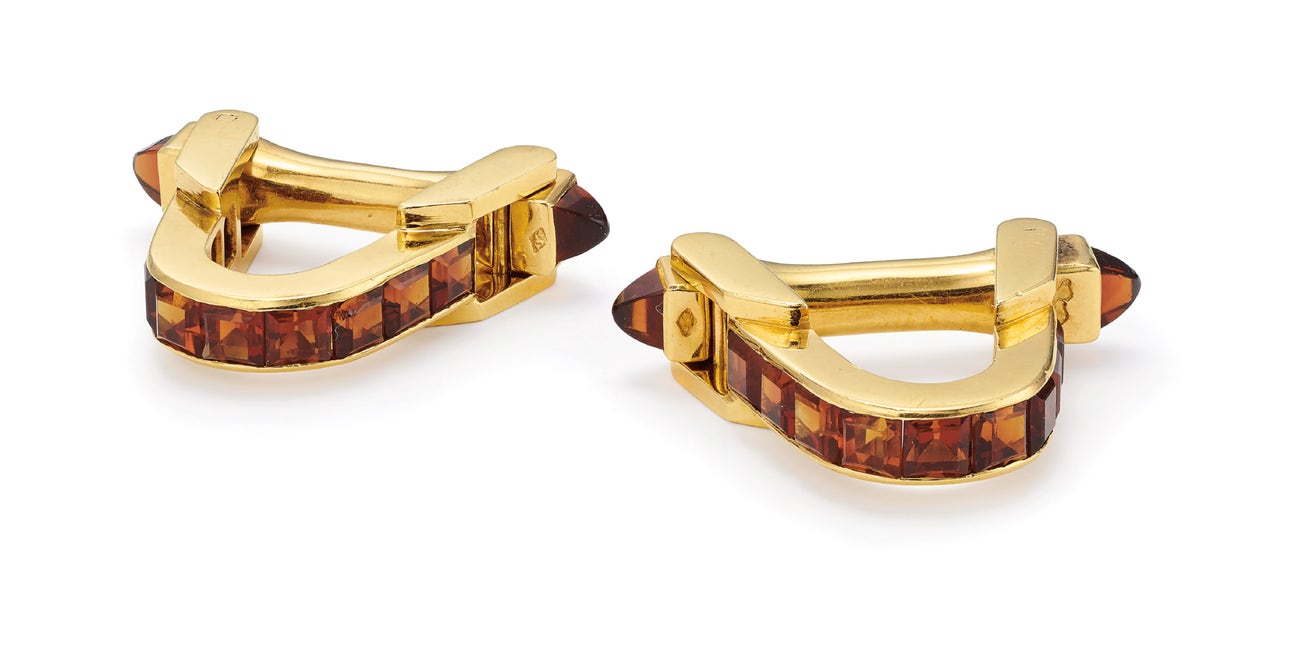 A Pair of Citrine and Gold Cufflinks