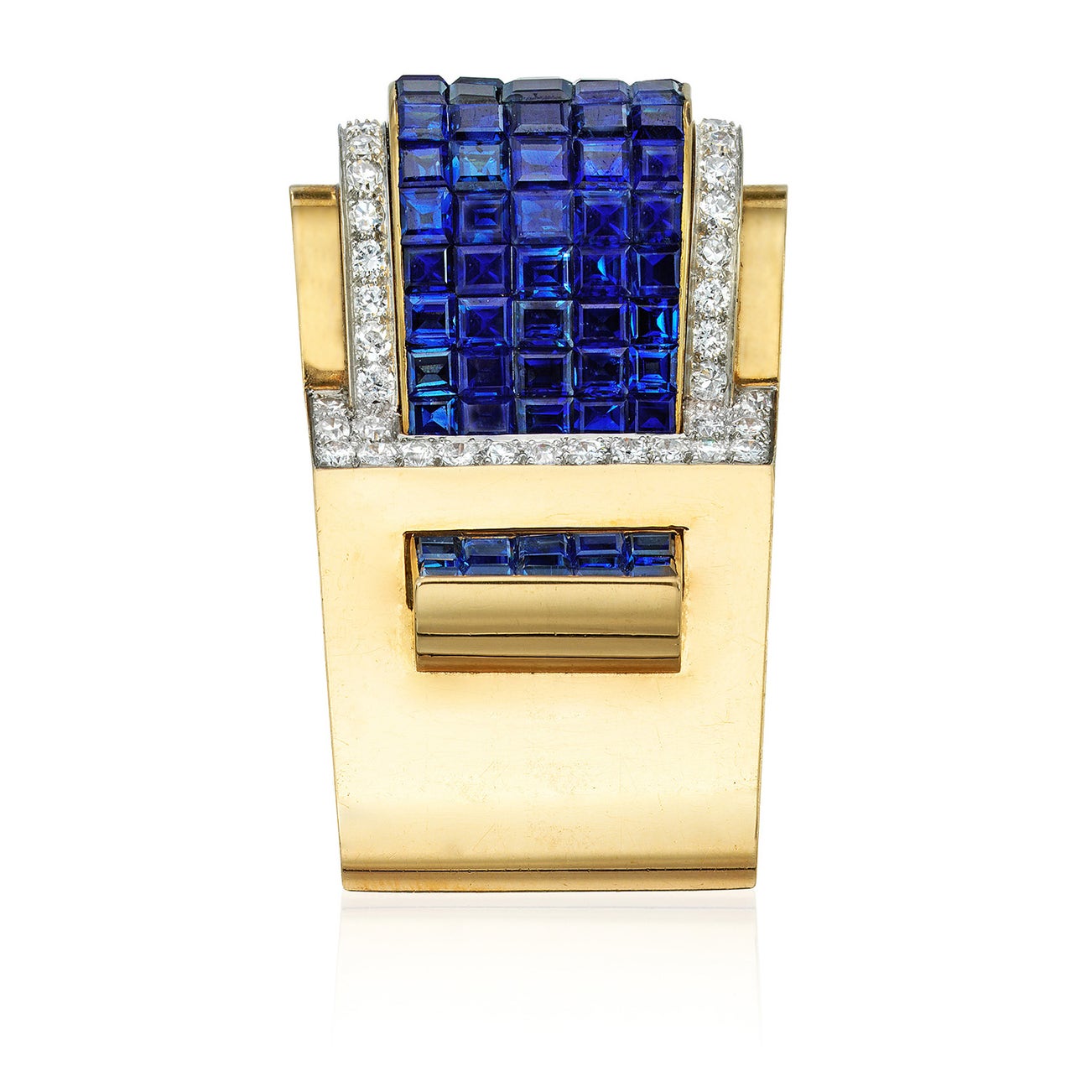A Sapphire, Diamond, Platinum, and Gold Brooch
