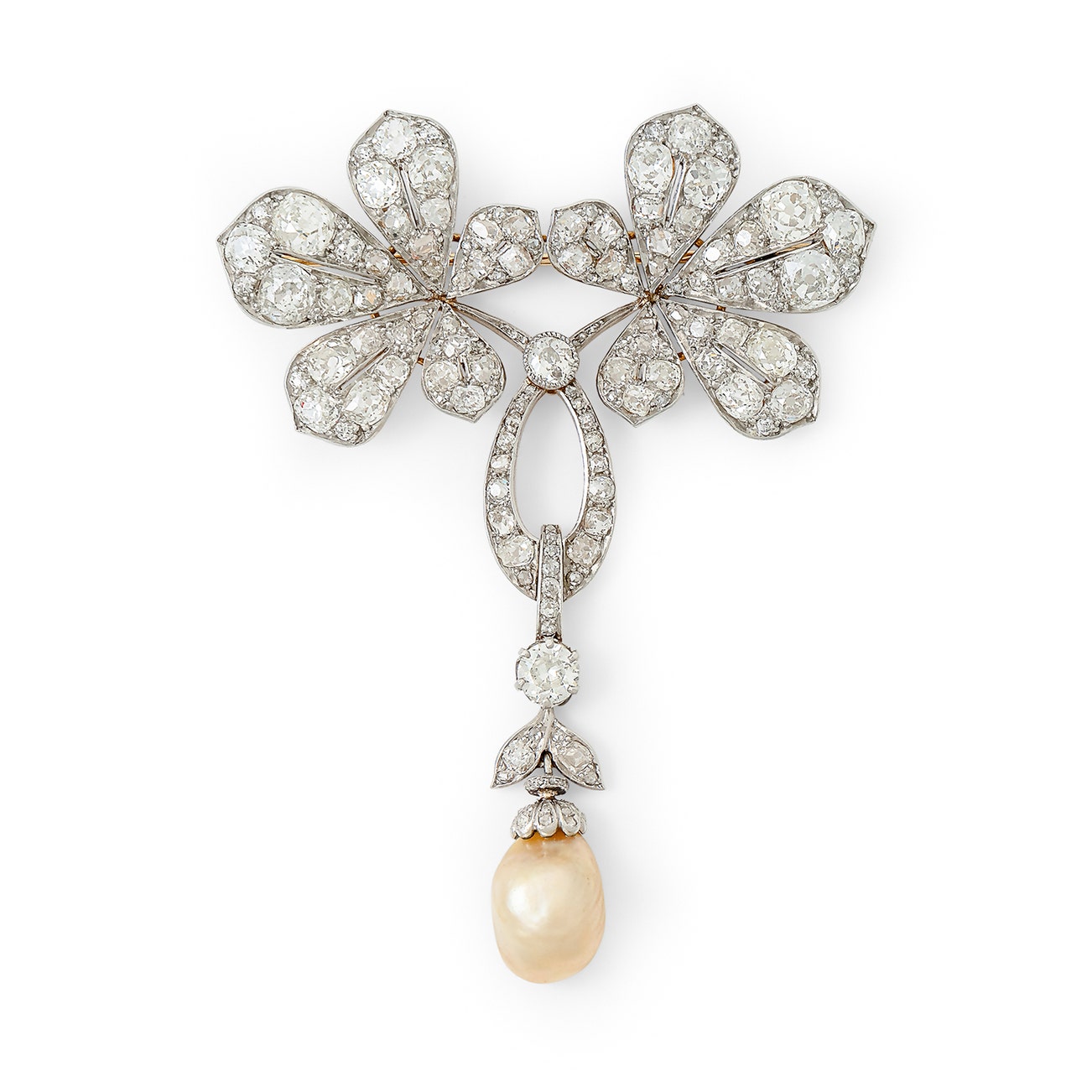 Natural pearl and diamond brooch, circa 1910