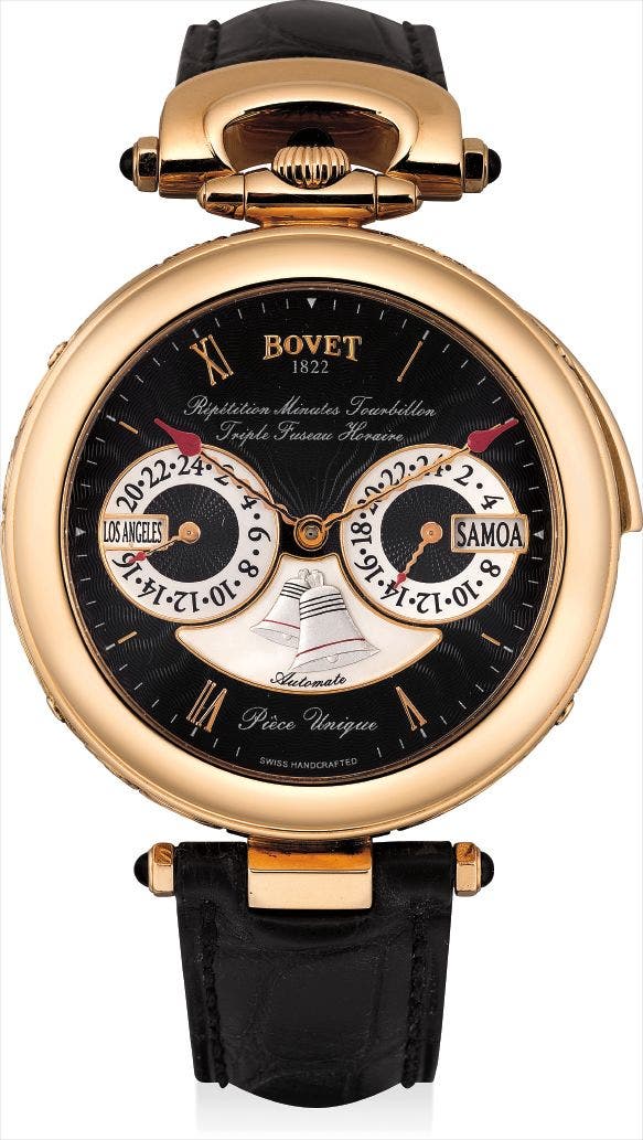 Swiss | 1822The firm Bovet 1822 has a rich, centuries-long history beginning when Edouard Bovet sold four decorative pocket watches in Canton Asia for what would today equal $1 million. By 1822, Edouard, with his brothers, registered the company in London, which at the time was an important center for watches and clocks. That same year, they moved their manufacturing center to the Swiss municipality Fleurier. Bovet became known for their highly decorative pocket watches for the Chinese market. Their richly engraved movements were so important to the watch that Bovet created the concept of the transparent watch back so owners could see the beauty of the movement. Bovet's oversized chronograph wristwatches, such as the Mono Rattrapante chronograph, are especially sought-after. Today, the firm continues their tradition of exquisitely enameled watches.