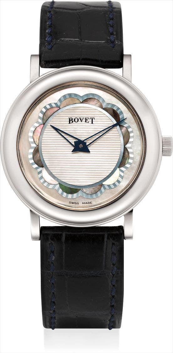 Swiss | 1822The firm Bovet 1822 has a rich, centuries-long history beginning when Edouard Bovet sold four decorative pocket watches in Canton Asia for what would today equal $1 million. By 1822, Edouard, with his brothers, registered the company in London, which at the time was an important center for watches and clocks. That same year, they moved their manufacturing center to the Swiss municipality Fleurier. Bovet became known for their highly decorative pocket watches for the Chinese market. Their richly engraved movements were so important to the watch that Bovet created the concept of the transparent watch back so owners could see the beauty of the movement. Bovet's oversized chronograph wristwatches, such as the Mono Rattrapante chronograph, are especially sought-after. Today, the firm continues their tradition of exquisitely enameled watches.