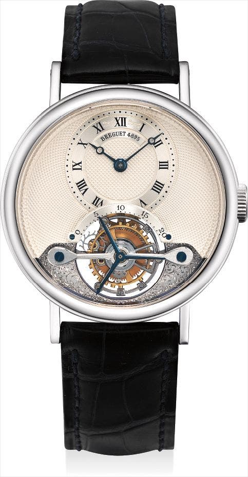 A fine white gold tourbillon wristwatch