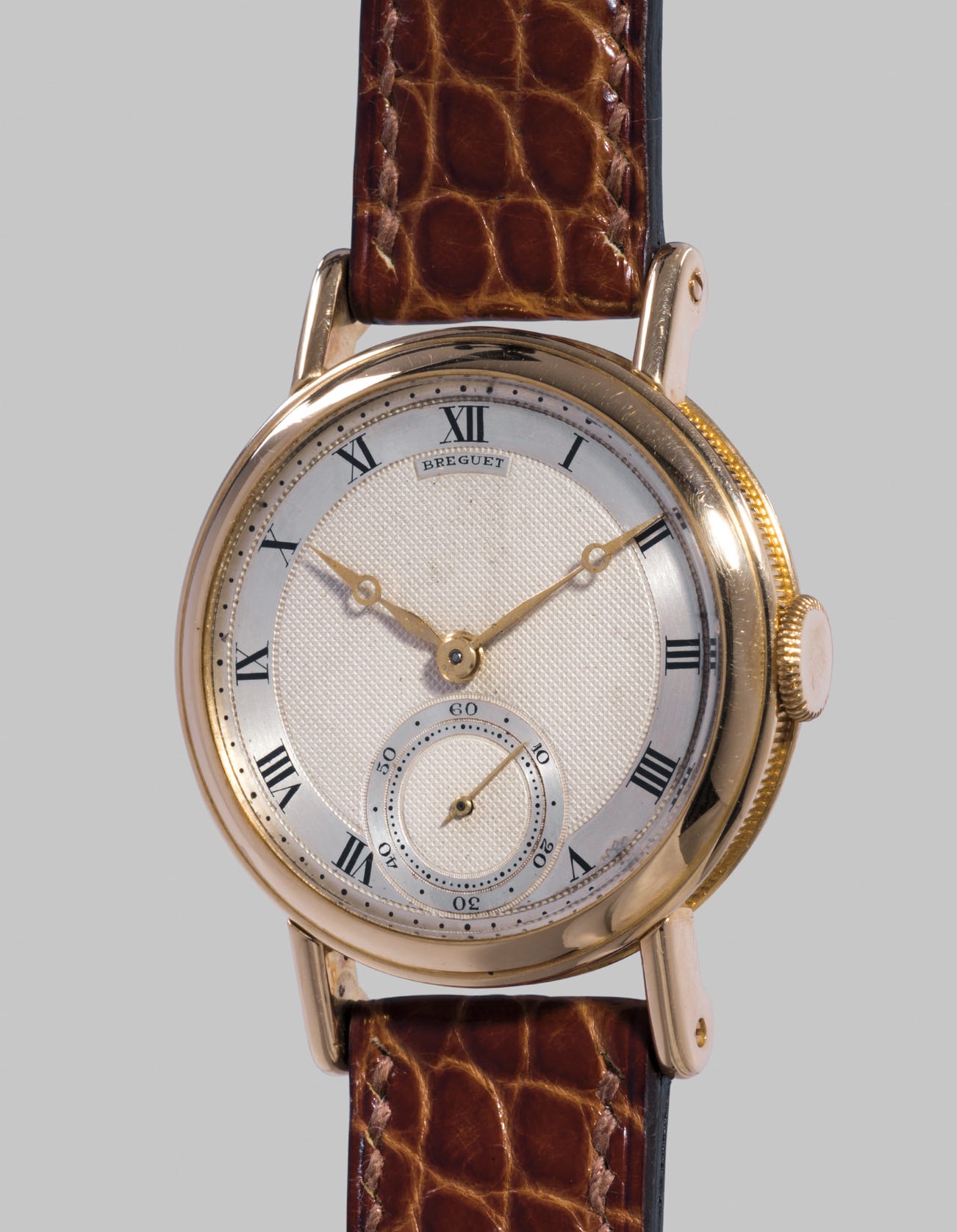 The present lot was sold on 10 November, 1956 for a rather impressive 120,000 French Francs, it is a spectacular example of Breguet's exquisite style, made during an era when Breguet was concentrating its efforts on producing Type XX chronographs for the French naval forces. Consequently it is part of a very rare number of Breguet gold dress watches made in the 1950s and its exceptional rarity makes it a superb addition to any collection.