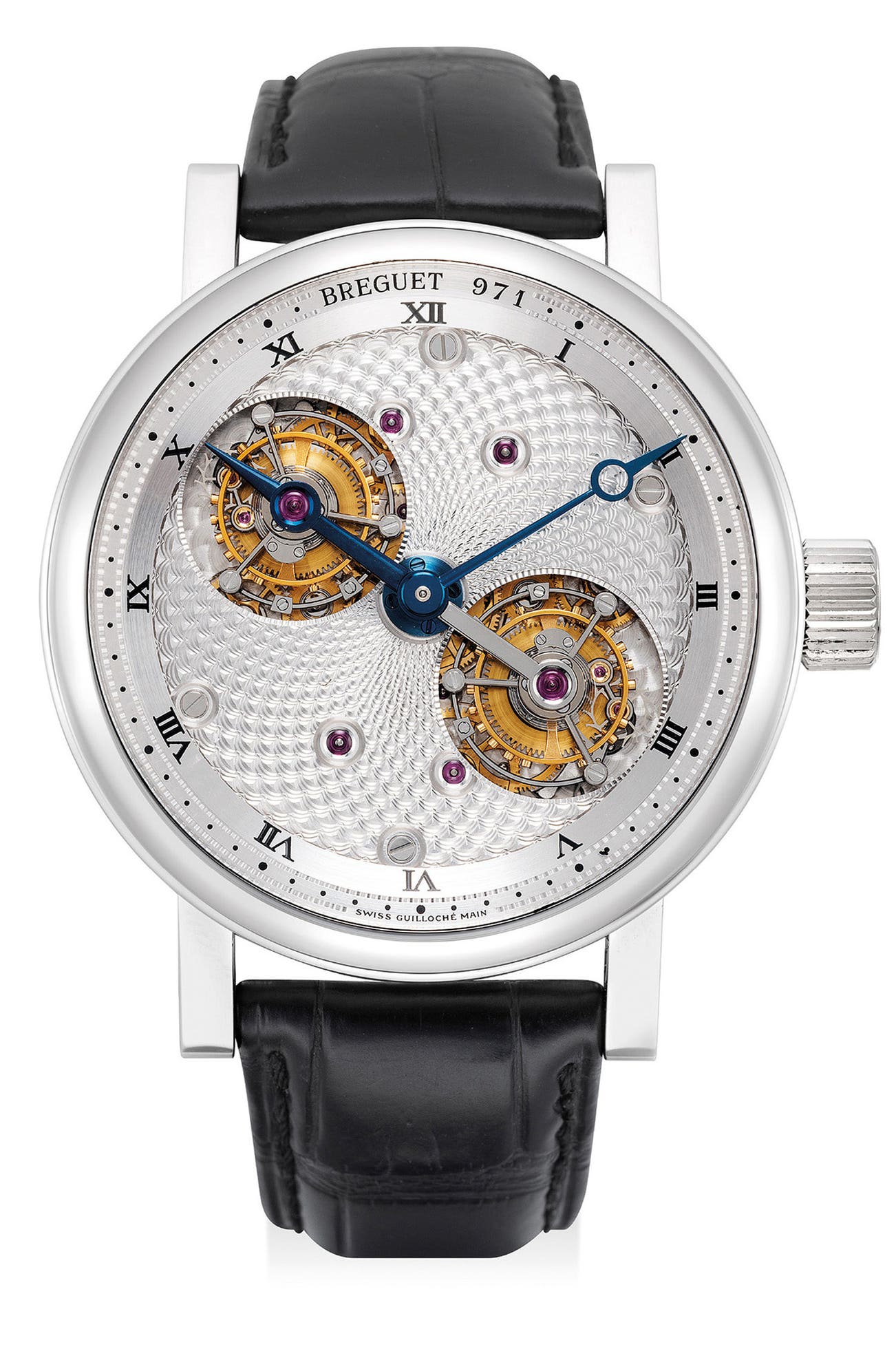 The present example of a Breguet Double Tourbillon ref. 5347 in platinum is presented in excellent overall condition and an opportunity for collectors to acquire an outstanding wristwatch derived from the original firm who innovated the tourbillon regulator.