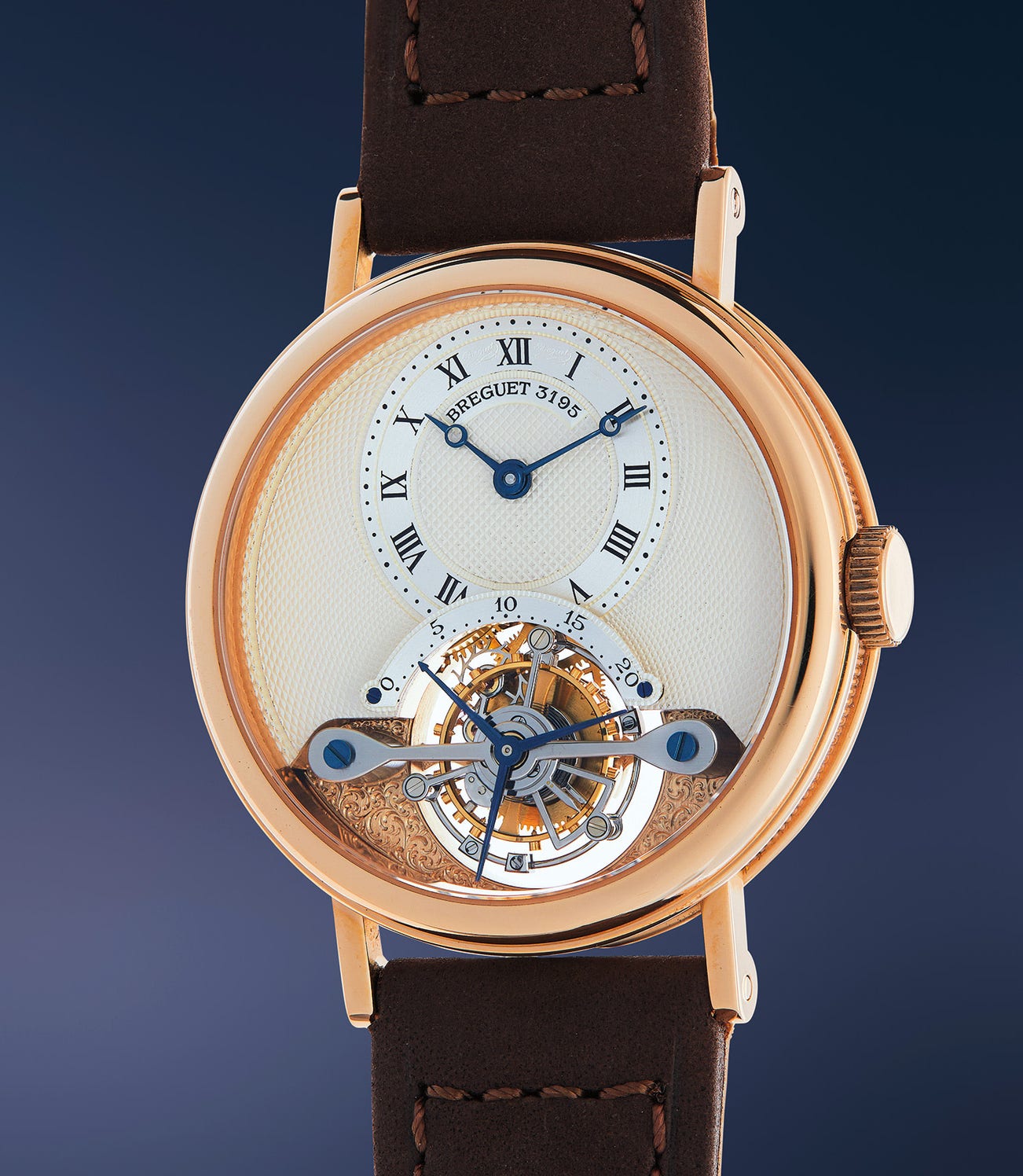 One hundred and ninety years later, Breguet’s modern descendants introduced the reference 3350, available in pink, yellow, and white gold. Classically Breguet, the semi-skeletonized dial is wrought from solid silver and hand-guillochéd. The ornate engraving that acts as a backdrop to the tourbillon cage is intricately and meticulously hand-done as well, and is carried over to the finishing on the movement. These details, as well as the Nouvelle Lemania ebauche are the trademarks of Daniel Roth, who was at the time the Master Watchmaker of Breguet working tirelessly to reinvigorate the brand. These timepieces bear the DNA seen later on Roth’s eponymous pieces.
