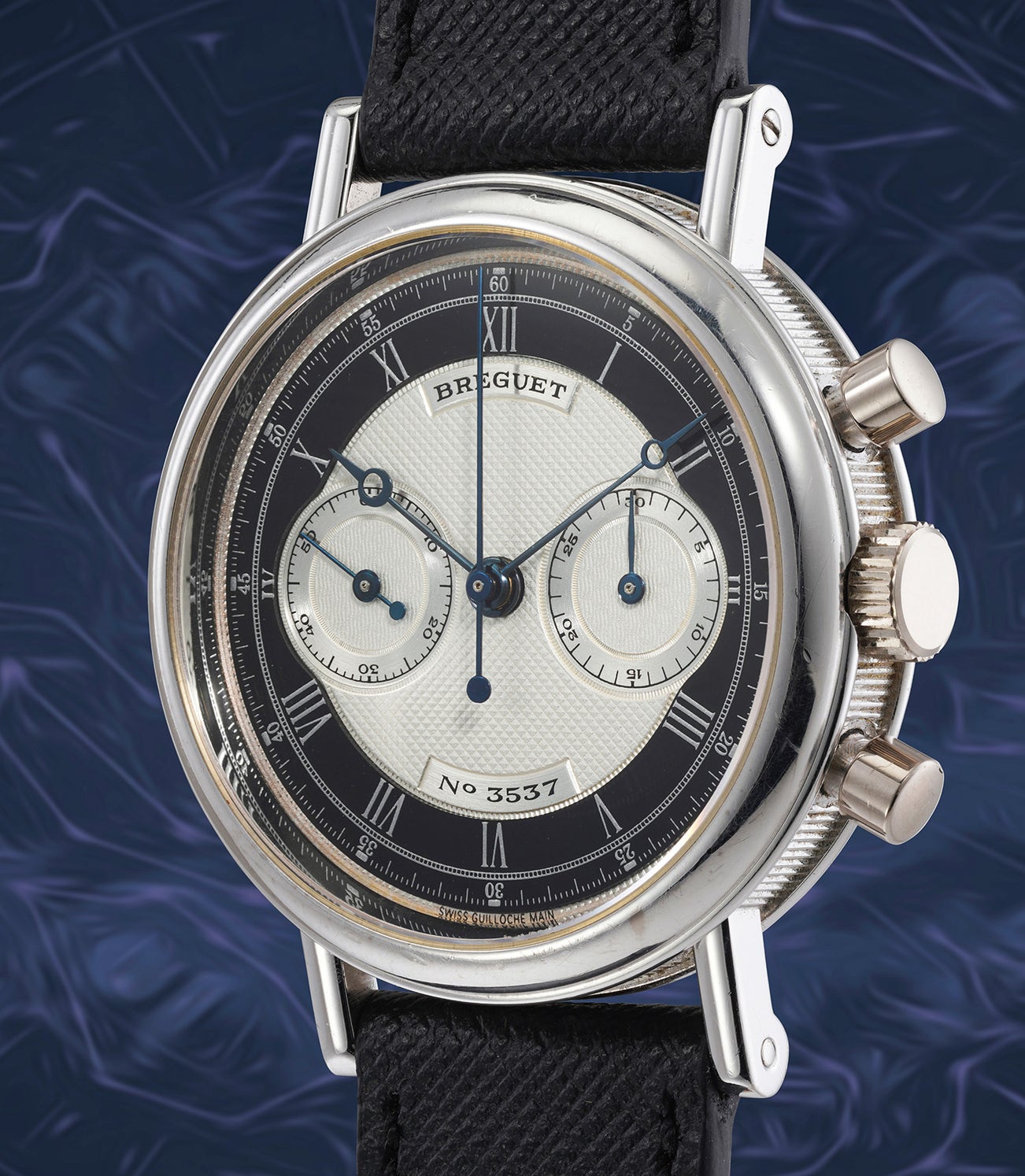 In absolutely superlative condition, the present reference Breguet 3237 chronograph is, according to research, one of only five examples in this configuration. Most notably, the dial bears the number "3537" meaning that the present watch is one serial number away from a previously sold example with serial number 3538.