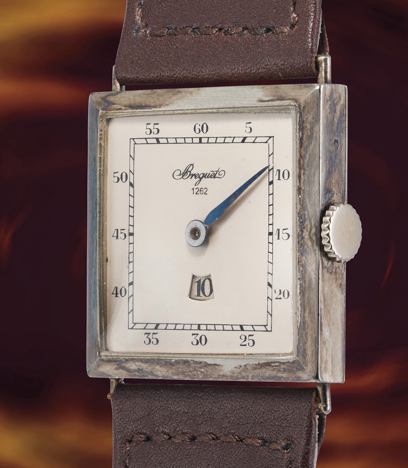 The present example is a beautifully preserved piece of early 20th-century watchmaking. Its square case with elegant wire lugs offers a refined, slim profile. Unusually, the hour aperture is positioned at 6 o’clock, a rare layout even among jump hours. A soft, even patina has developed on the case, telling the story of a watch that’s been carefully cherished for nearly a century. Confirmed by Breguet's extract of archives as sold in 1928 to Monsieur Haïtas, and with only around 50 jump hour watches believed to have been produced by the brand in the 20th century, this is a rare and coveted piece for the discerning collector.