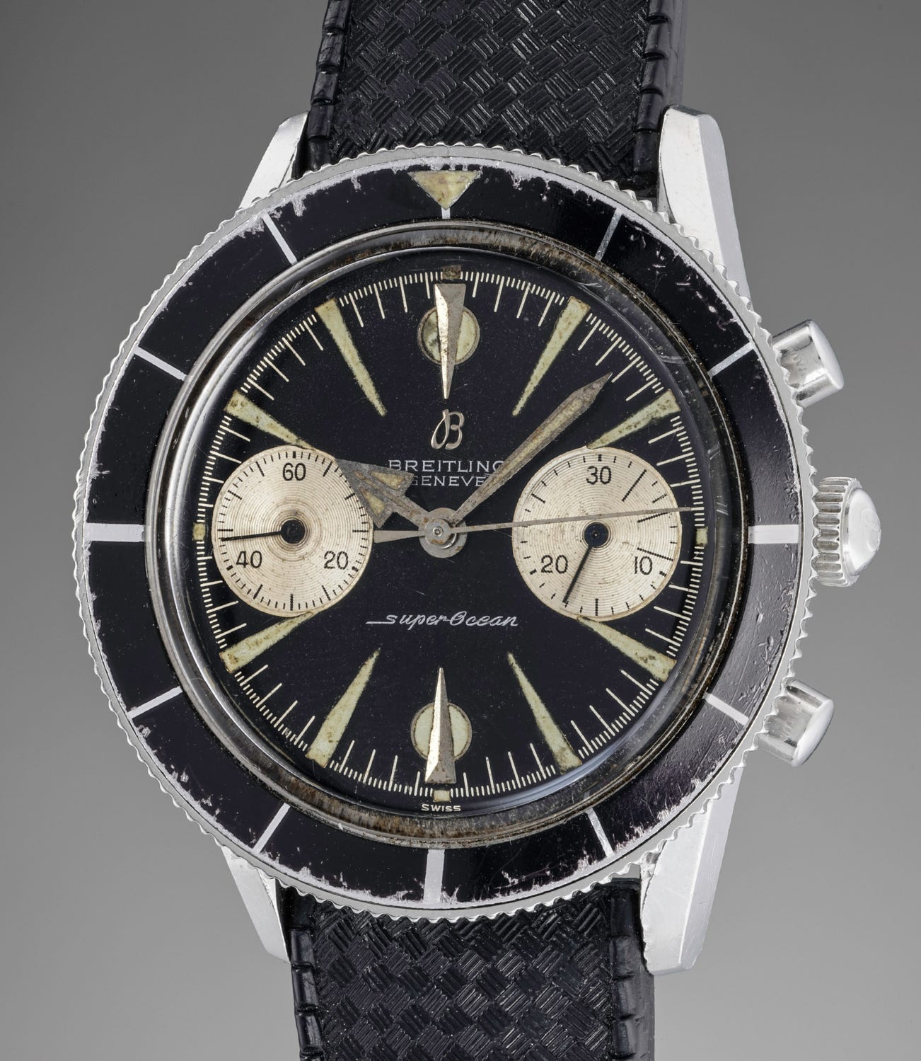 The present SuperOcean reference 807 chronograph is most probably one of the rarest dive chronographs to appear at auction as only a few were made and rarely does an example grace the auction room. Most of them seem to have disappeared under the sea.
