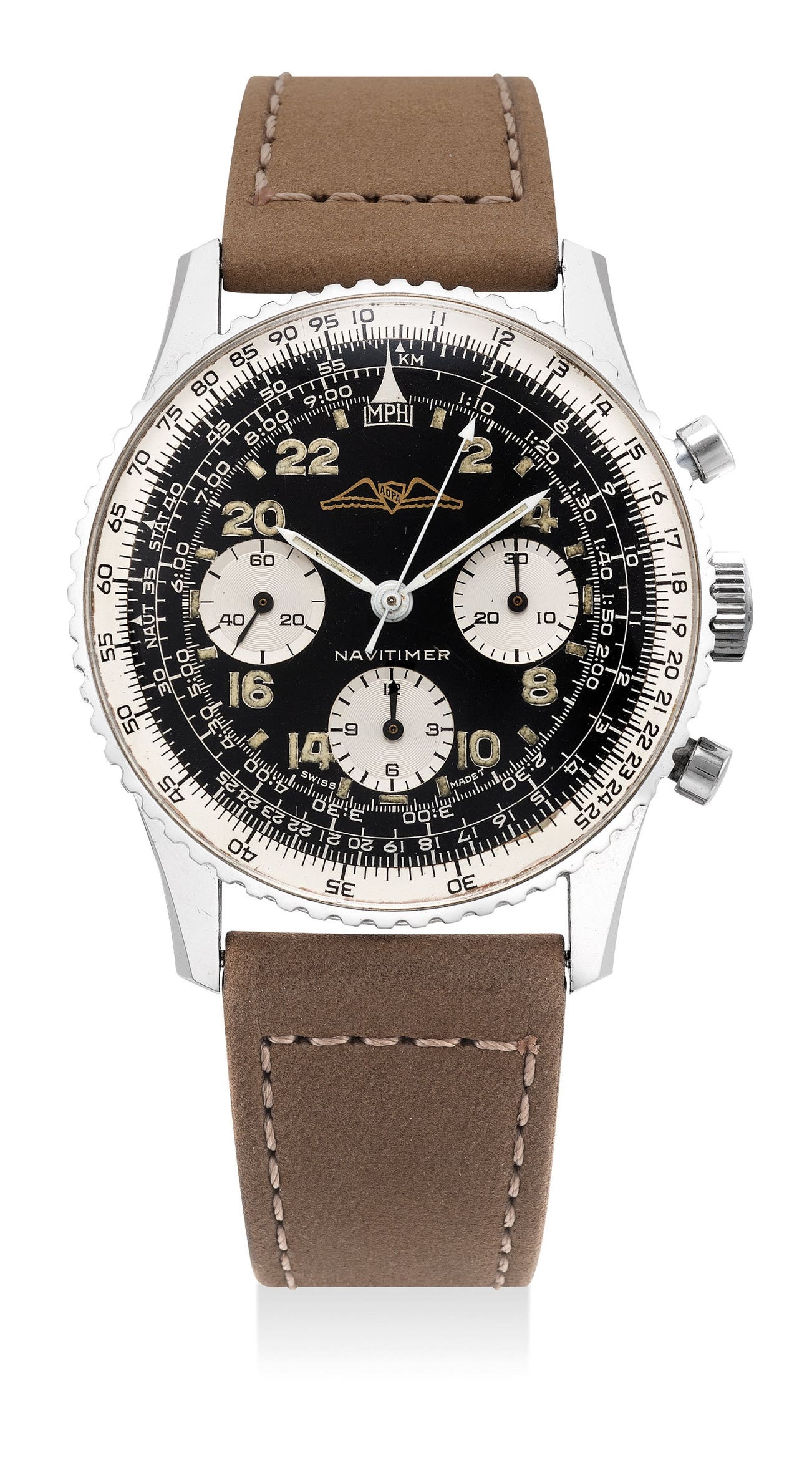 The present example is a very nice and rare variant of the Cosmonaute ref. 809, featuring and AOPA signature on the dial with the correct “WOG” stamp on the bridge of the movement and is enhanced by the 24-hour luminous numerals on the dial. Presented in attractive and nice overall condition, this is a fantastic opportunity for collectors of pilot watches to acquire an iconic part of aviation history.