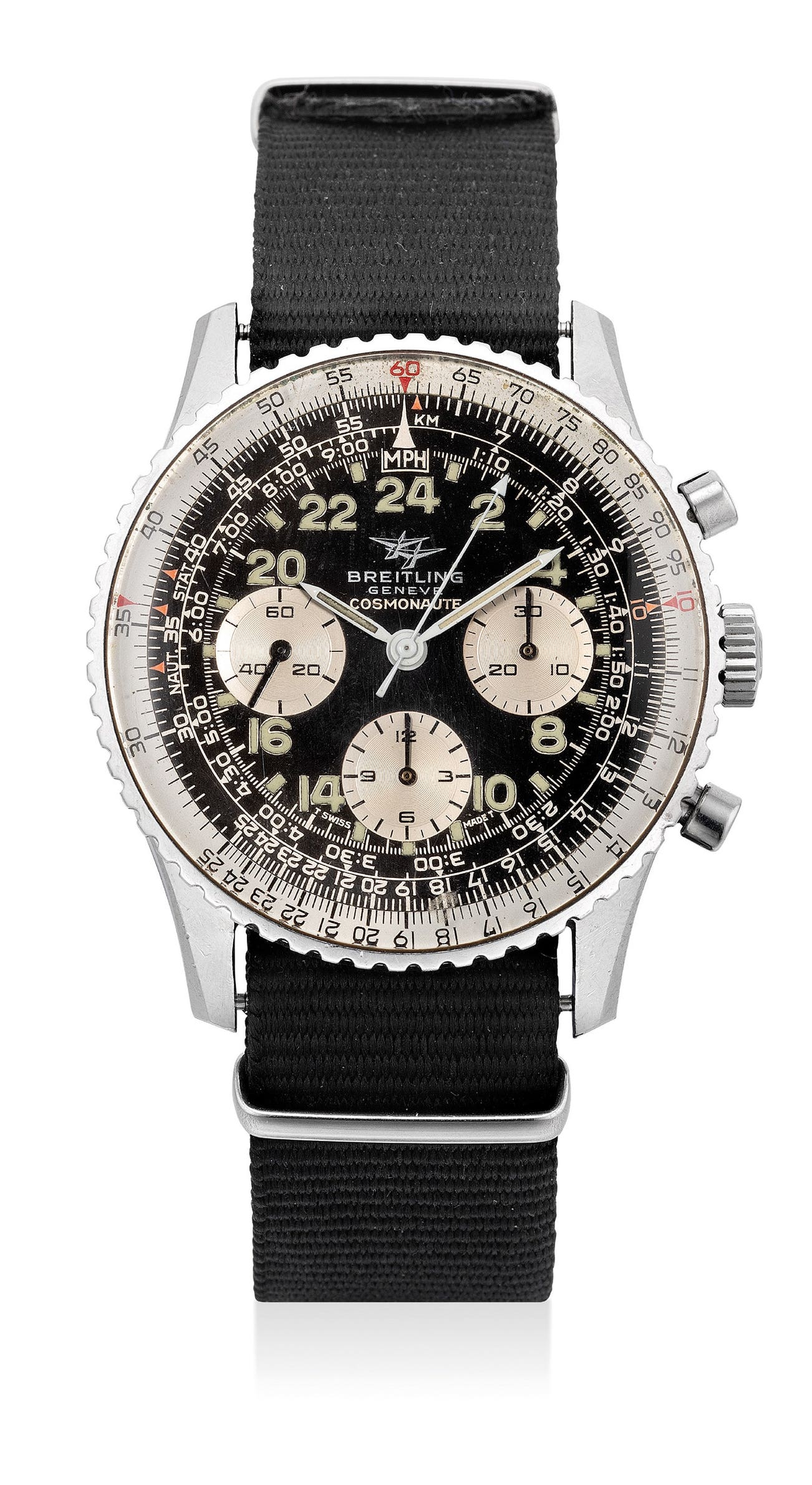 The present example is a Breitling Cosmonaute from 1967 with a case back engraving in Arabic indicating the present example to likely be formerly a property belonging to the Israeli military.