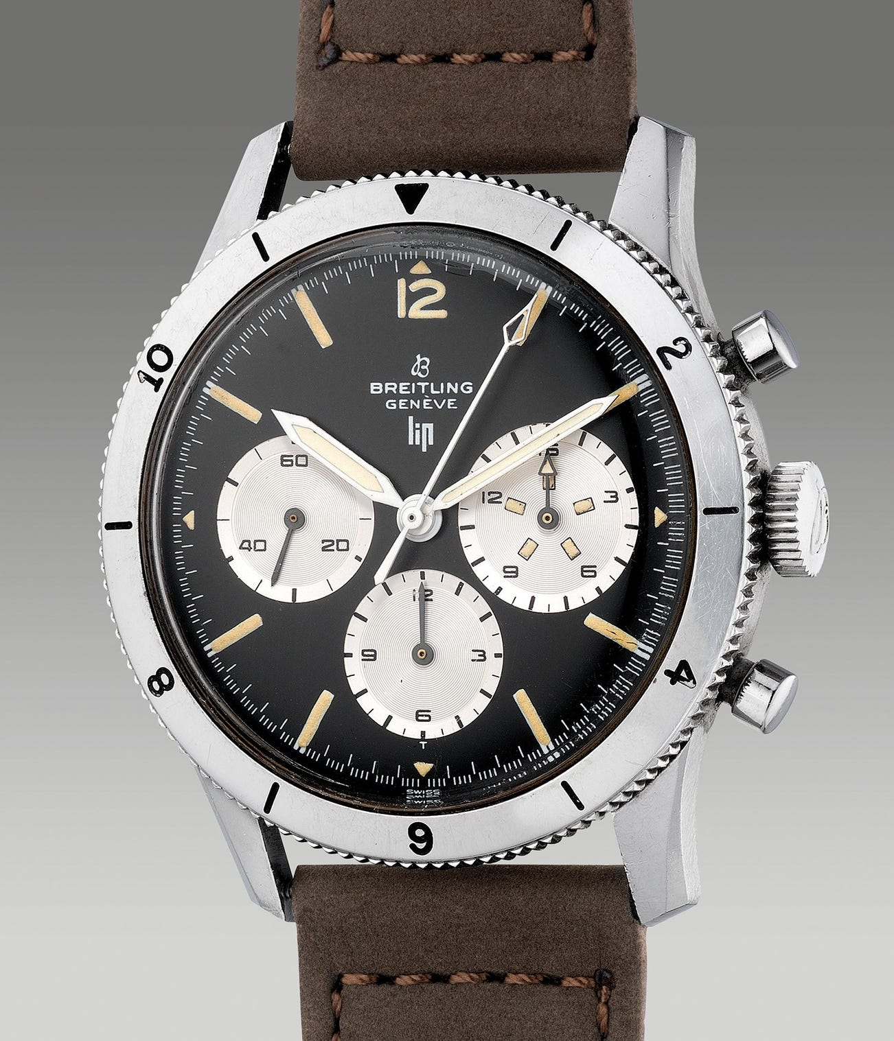 The present example of a ref. 765 CP “Co-Pilot” is presented in attractive overall condition boasting a nice case with uninterrupted bevels. Furthermore, it is double signed by French retailer Lip, enhancing its rarity to a heightened level. Coming from the family of the original owner, it is the first time for the present example to appear in the market.