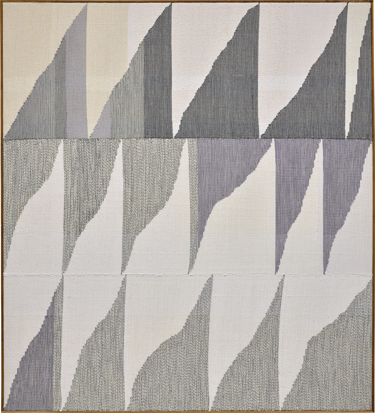handwoven fibers, wool, cotton and acrylic on canvas, in artist’s frame
