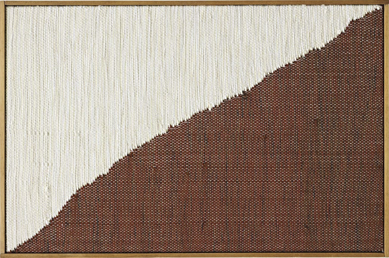 handwoven fibres, wool, cotton, acrylic on canvas, in artist's frame