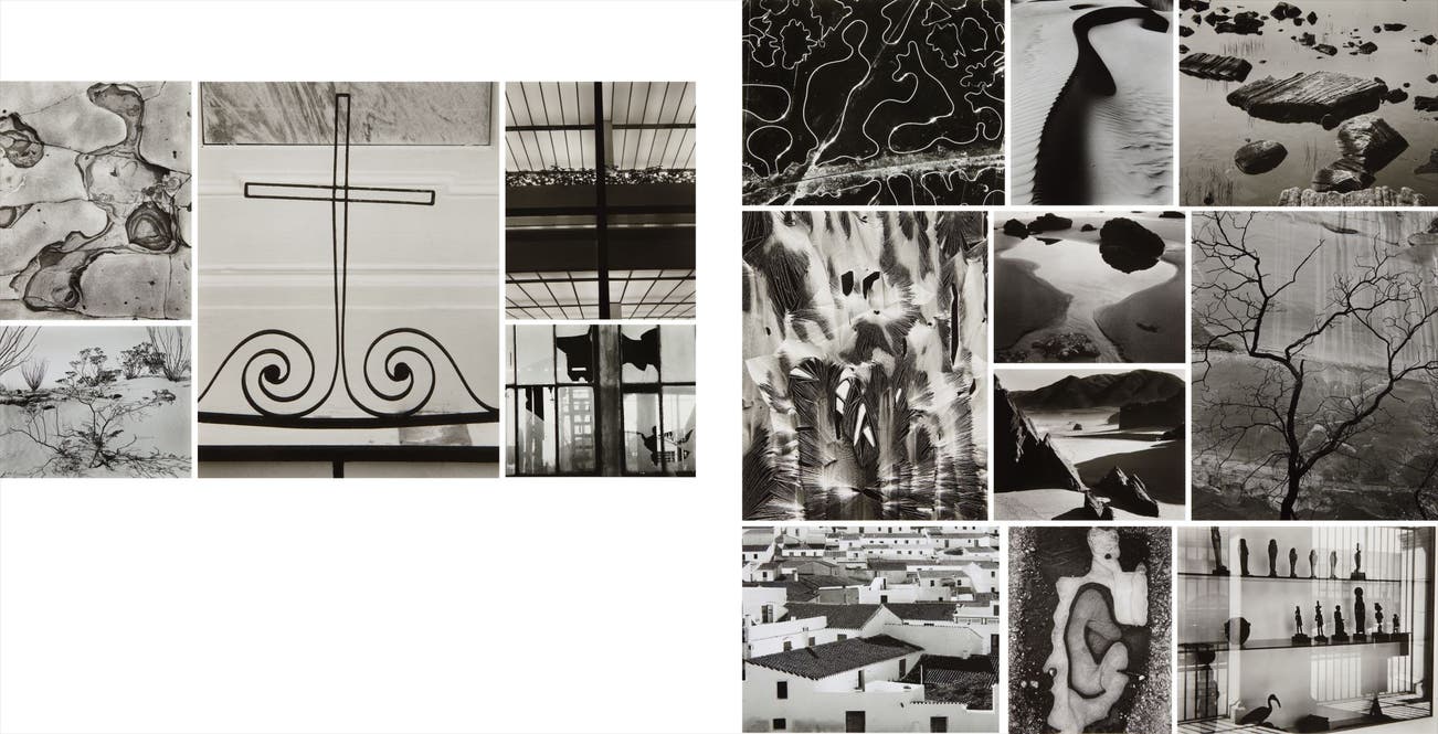 Titles include: Rock Form, 1960; Crypt, 1956; Manufacturer's Trust Bank, 1956; Texas Desert, 1946; Storefront, 1959; Broken Glass, 1955; Dune, 1934; Lake and Rocks, 1960; Cracked Paint, 1952; Tidal Pool, 1960; Garrapata Beach, 1954; Tree and Rock Wall, 1959; Village, 1960; Ice Forms, 1955; Window Display, 1954
