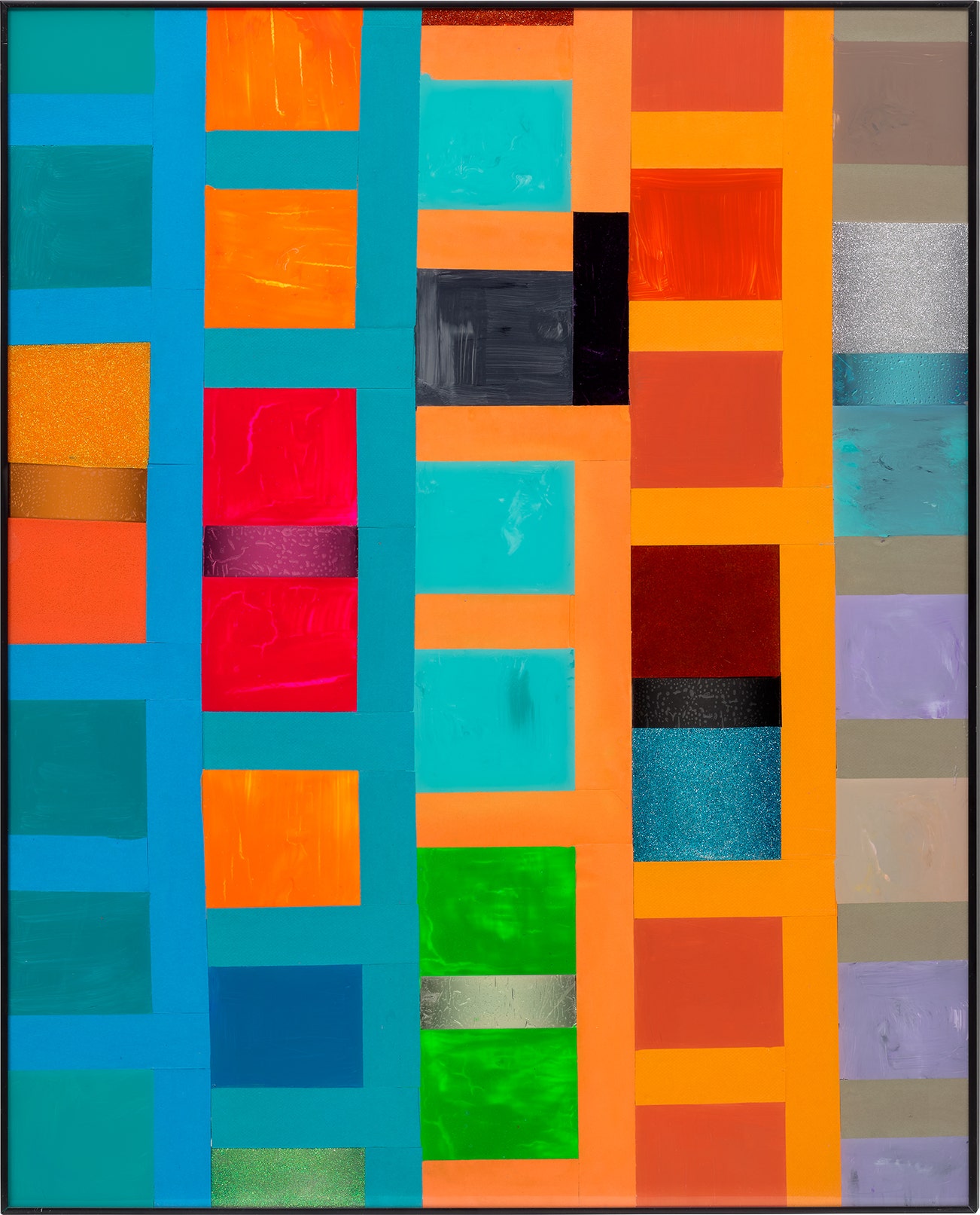 mixed media on Plexiglas, reverse-glass technique, in artist's frame