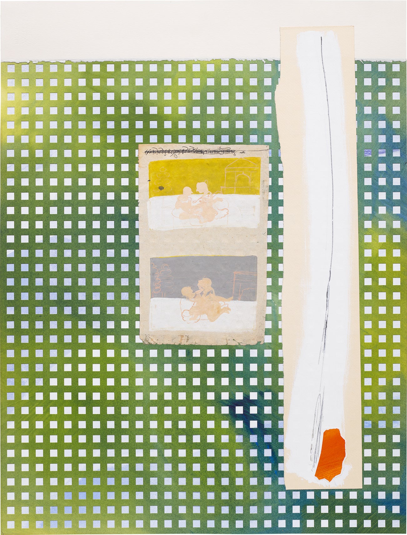 acrylic, paper collage, pencil and gouache with Indian miniature on paper