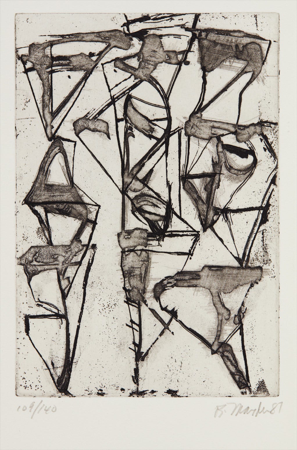 American | 1938Born in Bronxville and working between New York City, Tivoli, New York, and Hydra, Greece, Brice Marden developed a unique style that departs from his Abstract Expressionist and Minimalist contemporaries. Drawing from his personal experiences and global travels, Marden’s works demonstrate a gestural and organic emotion channeled through the power of color. By the late 1960s, Marden received international recognition as the master of the monochrome panel and, in the late 1970s, began exploring the relationship between horizontal and vertical planes. His practice is deeply informed by his knowledge of classical architecture, world religion, ancient history, and spirituality. Elected to the American Academy of Arts and Letters in 1998, Marden is represented in notable institutional collections including the Whitney Museum of Art, New York, Philadelphia Museum of Art, Stedelijk Museum, Amsterdam, and Centre Georges Pompidou, Paris.