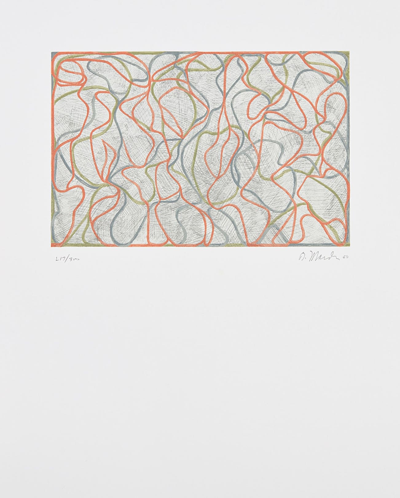 American | 1938Born in Bronxville and working between New York City, Tivoli, New York, and Hydra, Greece, Brice Marden developed a unique style that departs from his Abstract Expressionist and Minimalist contemporaries. Drawing from his personal experiences and global travels, Marden’s works demonstrate a gestural and organic emotion channeled through the power of color. By the late 1960s, Marden received international recognition as the master of the monochrome panel and, in the late 1970s, began exploring the relationship between horizontal and vertical planes. His practice is deeply informed by his knowledge of classical architecture, world religion, ancient history, and spirituality. Elected to the American Academy of Arts and Letters in 1998, Marden is represented in notable institutional collections including the Whitney Museum of Art, New York, Philadelphia Museum of Art, Stedelijk Museum, Amsterdam, and Centre Georges Pompidou, Paris.