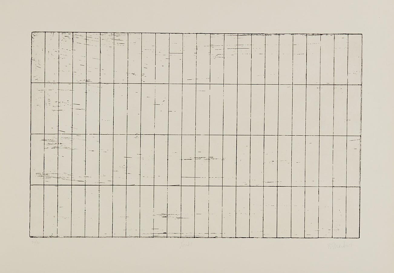 American | 1938Born in Bronxville and working between New York City, Tivoli, New York, and Hydra, Greece, Brice Marden developed a unique style that departs from his Abstract Expressionist and Minimalist contemporaries. Drawing from his personal experiences and global travels, Marden’s works demonstrate a gestural and organic emotion channeled through the power of color. By the late 1960s, Marden received international recognition as the master of the monochrome panel and, in the late 1970s, began exploring the relationship between horizontal and vertical planes. His practice is deeply informed by his knowledge of classical architecture, world religion, ancient history, and spirituality. Elected to the American Academy of Arts and Letters in 1998, Marden is represented in notable institutional collections including the Whitney Museum of Art, New York, Philadelphia Museum of Art, Stedelijk Museum, Amsterdam, and Centre Georges Pompidou, Paris.