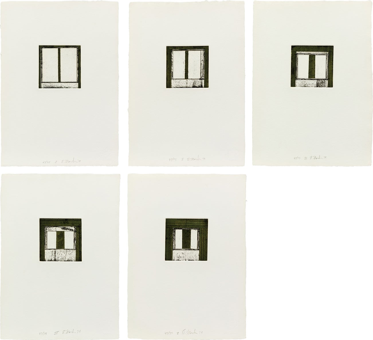 American | 1938Born in Bronxville and working between New York City, Tivoli, New York, and Hydra, Greece, Brice Marden developed a unique style that departs from his Abstract Expressionist and Minimalist contemporaries. Drawing from his personal experiences and global travels, Marden’s works demonstrate a gestural and organic emotion channeled through the power of color. By the late 1960s, Marden received international recognition as the master of the monochrome panel and, in the late 1970s, began exploring the relationship between horizontal and vertical planes. His practice is deeply informed by his knowledge of classical architecture, world religion, ancient history, and spirituality. Elected to the American Academy of Arts and Letters in 1998, Marden is represented in notable institutional collections including the Whitney Museum of Art, New York, Philadelphia Museum of Art, Stedelijk Museum, Amsterdam, and Centre Georges Pompidou, Paris.