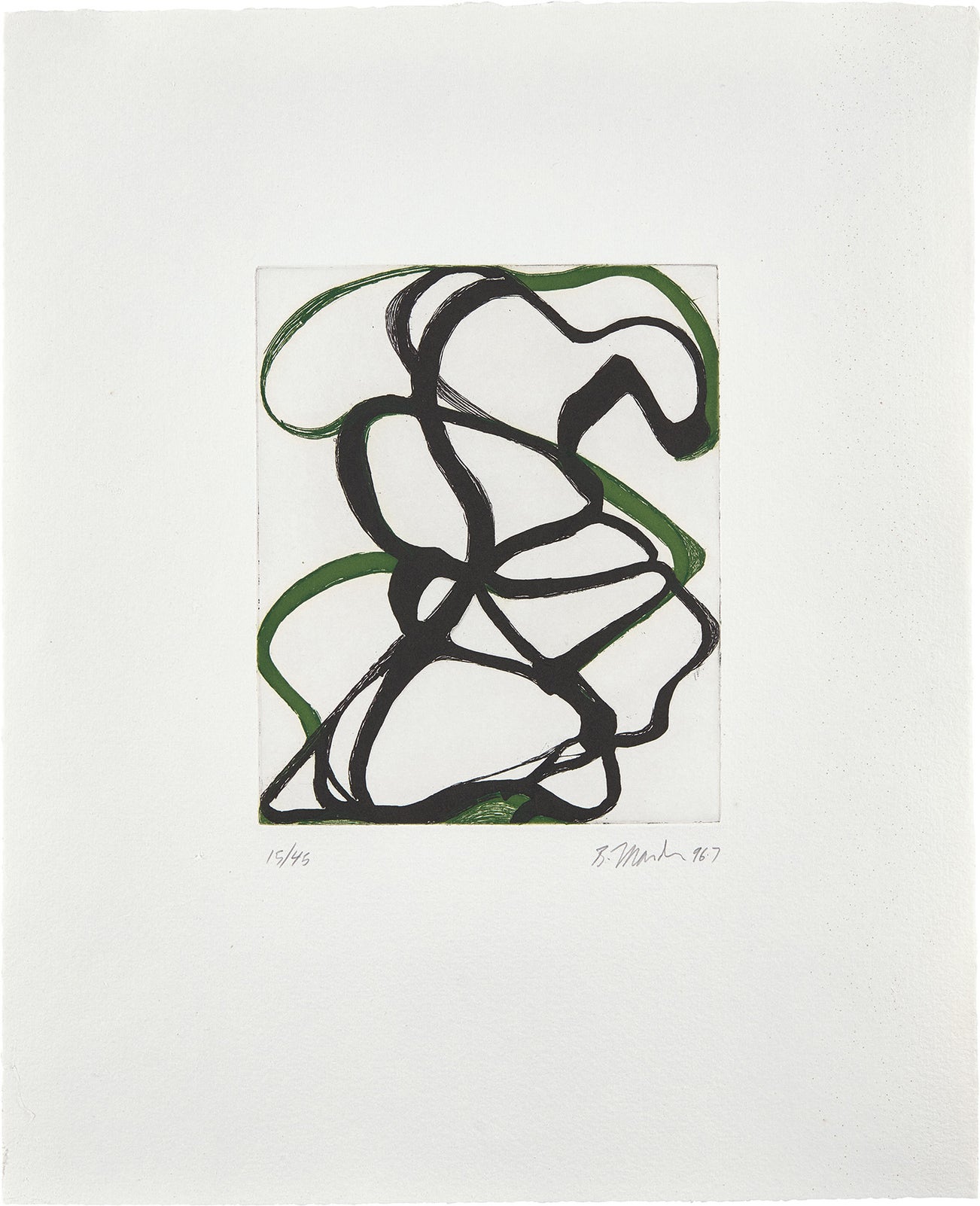American | 1938Born in Bronxville and working between New York City, Tivoli, New York, and Hydra, Greece, Brice Marden developed a unique style that departs from his Abstract Expressionist and Minimalist contemporaries. Drawing from his personal experiences and global travels, Marden’s works demonstrate a gestural and organic emotion channeled through the power of color. By the late 1960s, Marden received international recognition as the master of the monochrome panel and, in the late 1970s, began exploring the relationship between horizontal and vertical planes. His practice is deeply informed by his knowledge of classical architecture, world religion, ancient history, and spirituality. Elected to the American Academy of Arts and Letters in 1998, Marden is represented in notable institutional collections including the Whitney Museum of Art, New York, Philadelphia Museum of Art, Stedelijk Museum, Amsterdam, and Centre Georges Pompidou, Paris.
