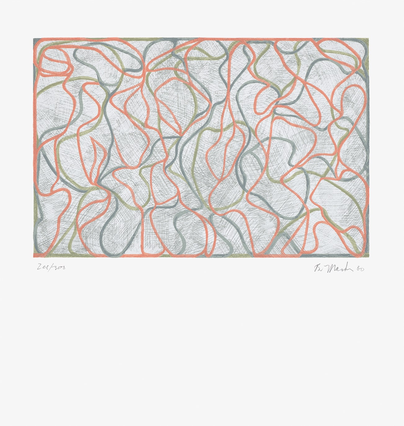 American | 1938Born in Bronxville and working between New York City, Tivoli, New York, and Hydra, Greece, Brice Marden developed a unique style that departs from his Abstract Expressionist and Minimalist contemporaries. Drawing from his personal experiences and global travels, Marden’s works demonstrate a gestural and organic emotion channeled through the power of color. By the late 1960s, Marden received international recognition as the master of the monochrome panel and, in the late 1970s, began exploring the relationship between horizontal and vertical planes. His practice is deeply informed by his knowledge of classical architecture, world religion, ancient history, and spirituality. Elected to the American Academy of Arts and Letters in 1998, Marden is represented in notable institutional collections including the Whitney Museum of Art, New York, Philadelphia Museum of Art, Stedelijk Museum, Amsterdam, and Centre Georges Pompidou, Paris.