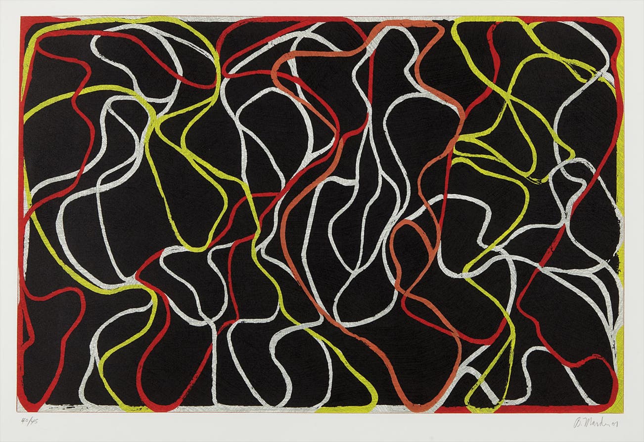 American | 1938Born in Bronxville and working between New York City, Tivoli, New York, and Hydra, Greece, Brice Marden developed a unique style that departs from his Abstract Expressionist and Minimalist contemporaries. Drawing from his personal experiences and global travels, Marden’s works demonstrate a gestural and organic emotion channeled through the power of color. By the late 1960s, Marden received international recognition as the master of the monochrome panel and, in the late 1970s, began exploring the relationship between horizontal and vertical planes. His practice is deeply informed by his knowledge of classical architecture, world religion, ancient history, and spirituality. Elected to the American Academy of Arts and Letters in 1998, Marden is represented in notable institutional collections including the Whitney Museum of Art, New York, Philadelphia Museum of Art, Stedelijk Museum, Amsterdam, and Centre Georges Pompidou, Paris.