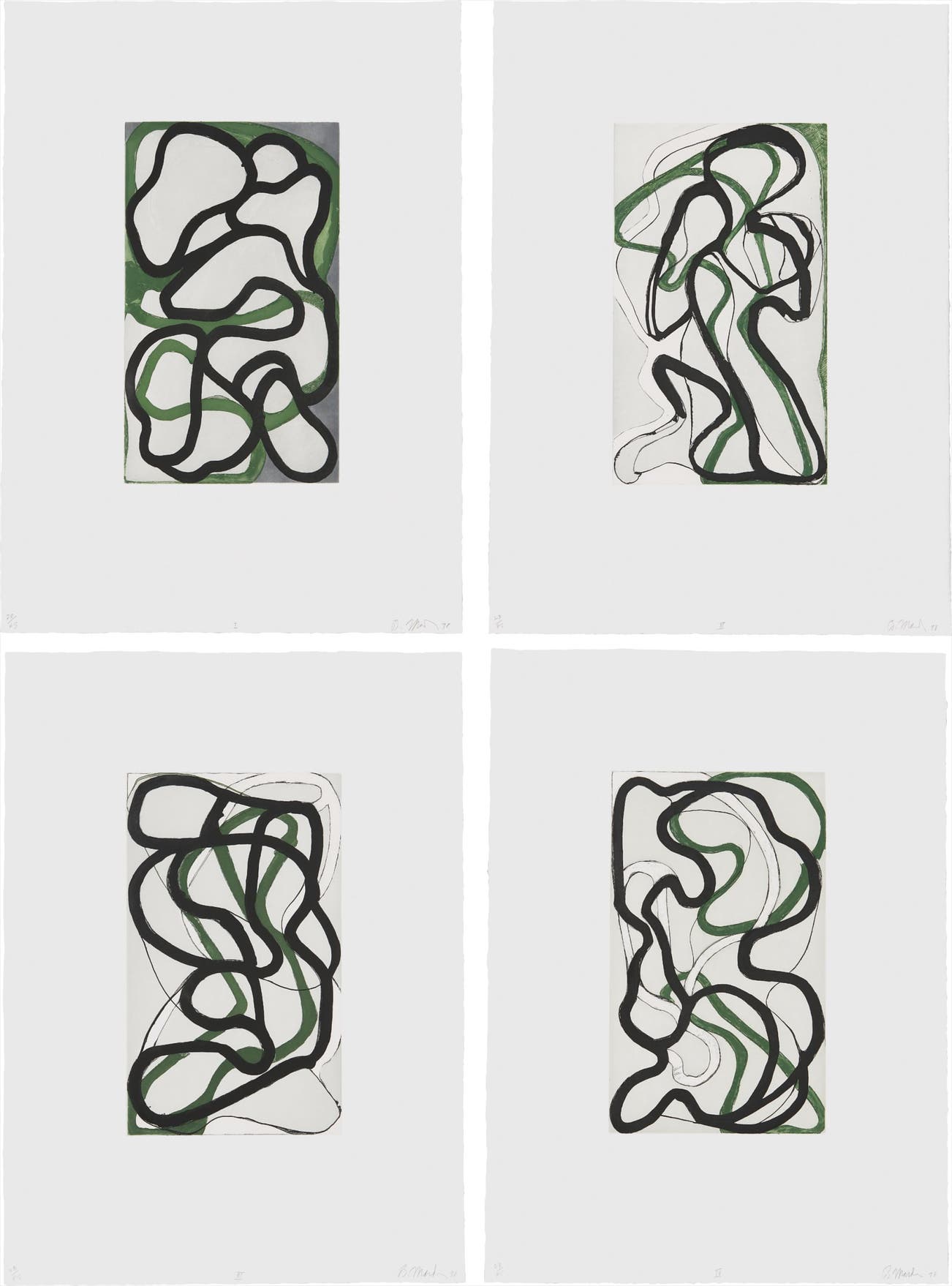 American | 1938Born in Bronxville and working between New York City, Tivoli, New York, and Hydra, Greece, Brice Marden developed a unique style that departs from his Abstract Expressionist and Minimalist contemporaries. Drawing from his personal experiences and global travels, Marden’s works demonstrate a gestural and organic emotion channeled through the power of color. By the late 1960s, Marden received international recognition as the master of the monochrome panel and, in the late 1970s, began exploring the relationship between horizontal and vertical planes. His practice is deeply informed by his knowledge of classical architecture, world religion, ancient history, and spirituality. Elected to the American Academy of Arts and Letters in 1998, Marden is represented in notable institutional collections including the Whitney Museum of Art, New York, Philadelphia Museum of Art, Stedelijk Museum, Amsterdam, and Centre Georges Pompidou, Paris.