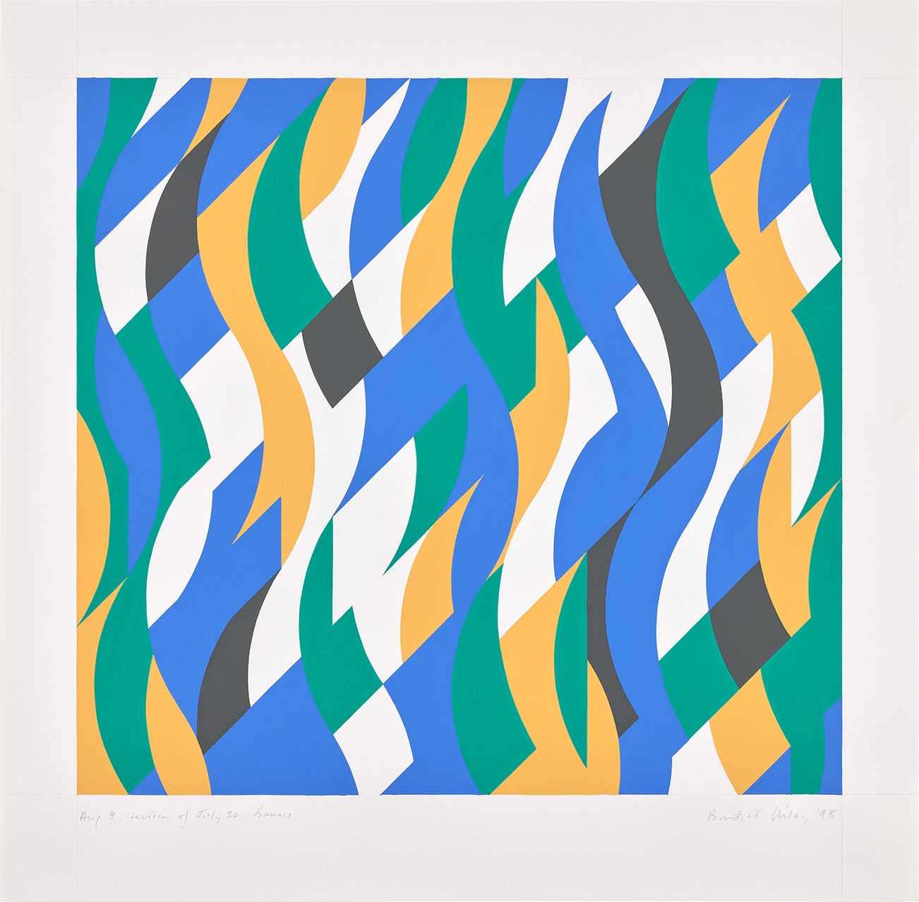 titled 'Aug 9, revision of July 30, Bassacs lower left'; signed and dated 'Bridget Riley '98' lower right