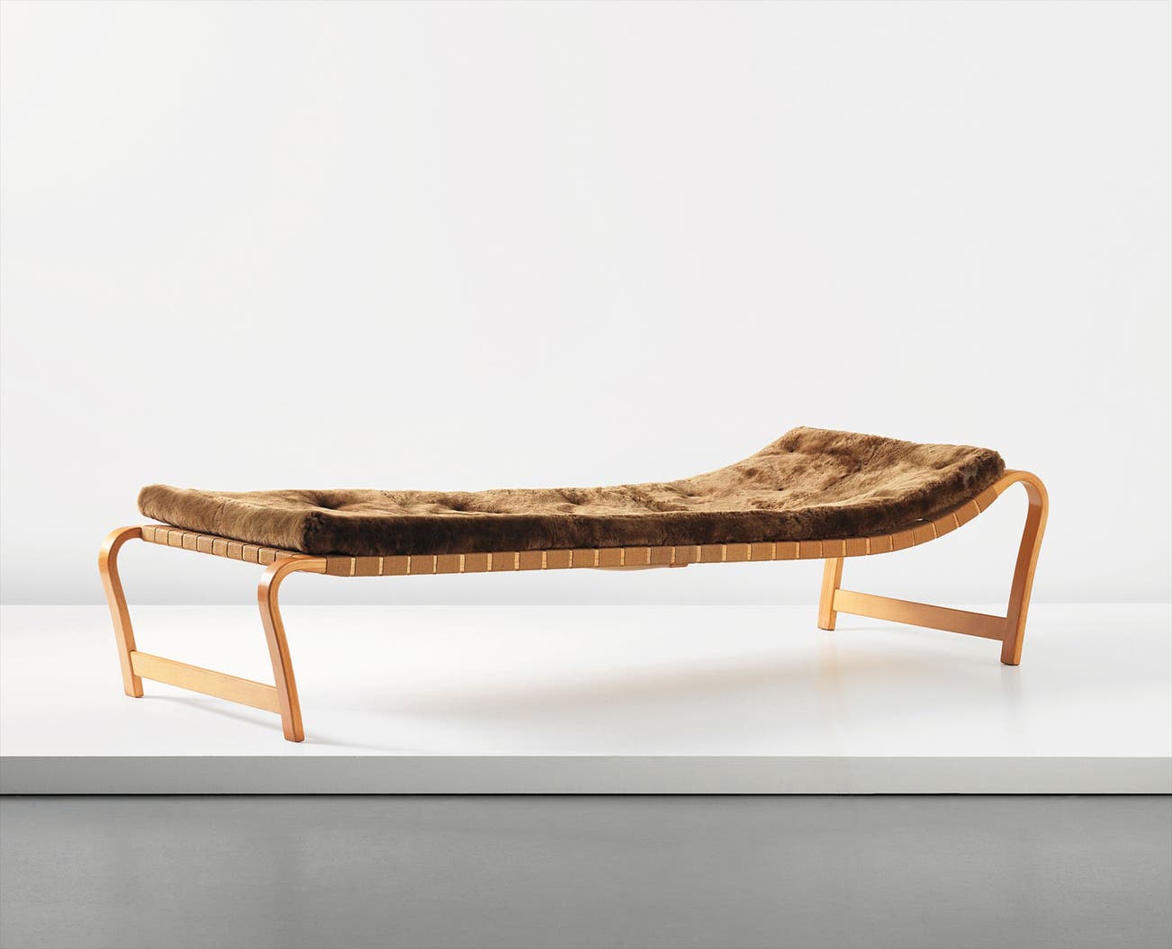 glue, these four models set a new standard for ergonomic design and innovative production techniques. A pivotal moment, Mathsson’s museum debut led to his participation (daybed included) in the Swedish Pavilion at the 1937 Exposition Internationale, afer which he named the present model his “Paris” daybed.
